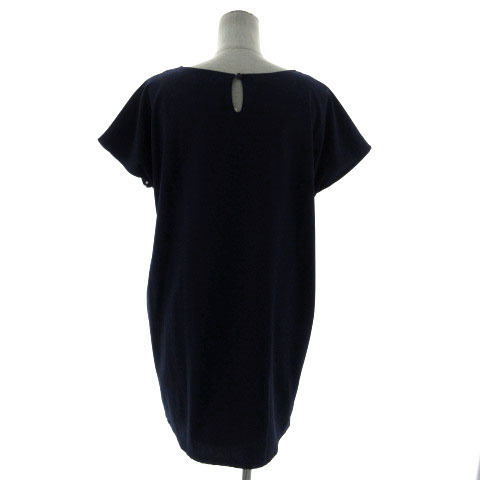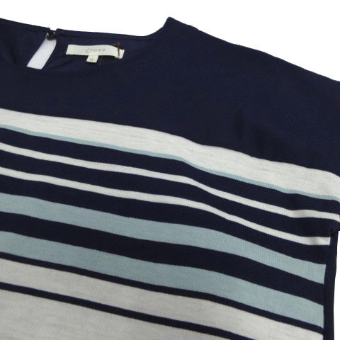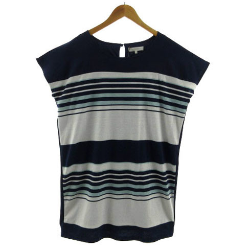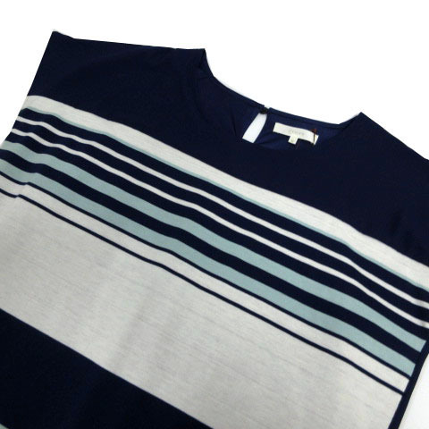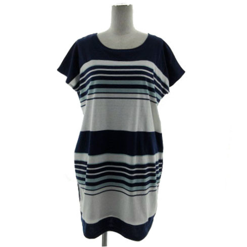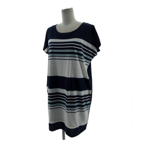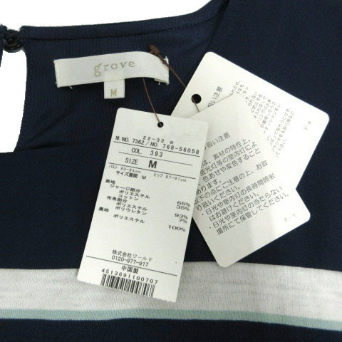 未使用品 グローブ grove カットソー チュニック丈 フレンチスリーブ ボーダー ネイビー 紺 ホワイト 白 ブルー系 青系 M レディース