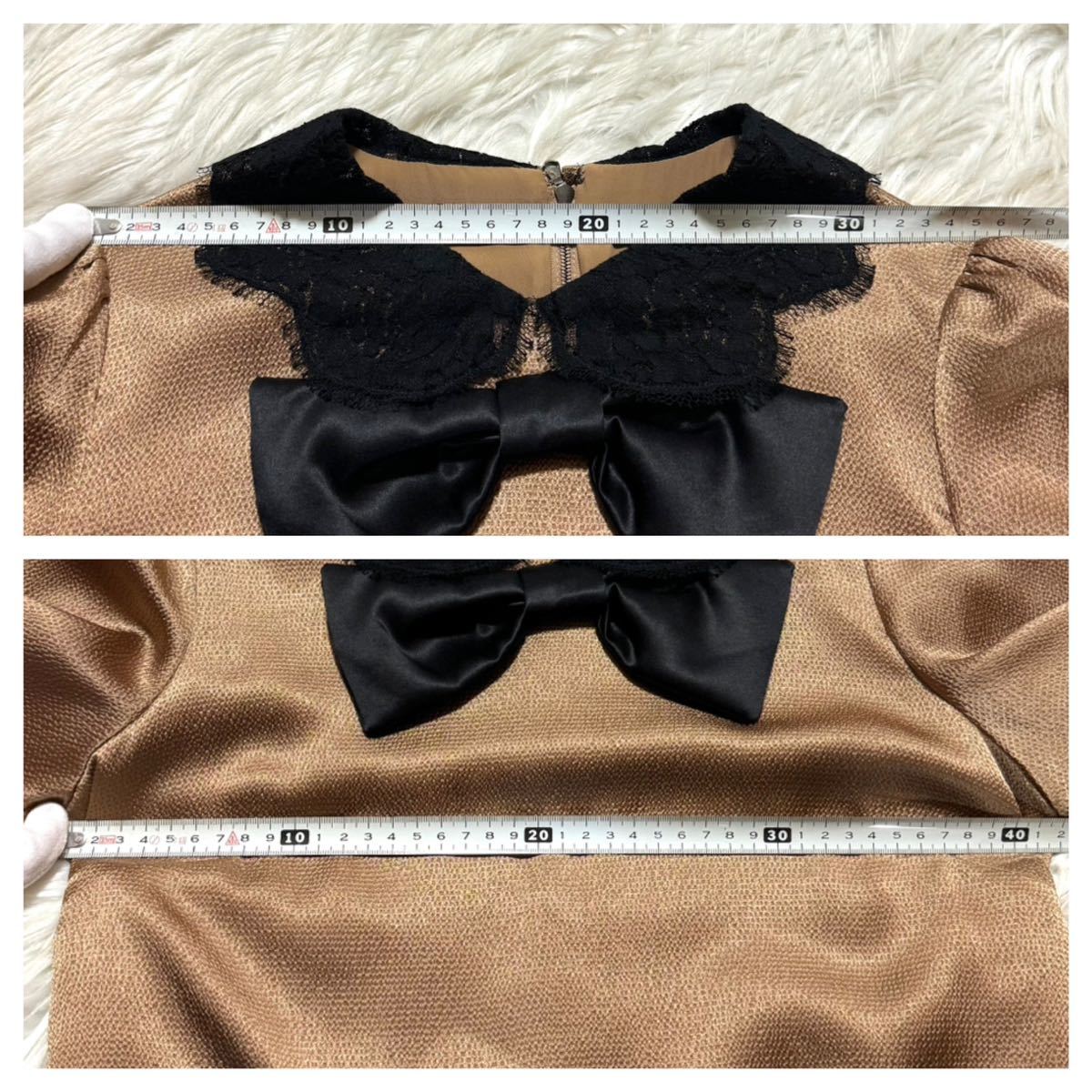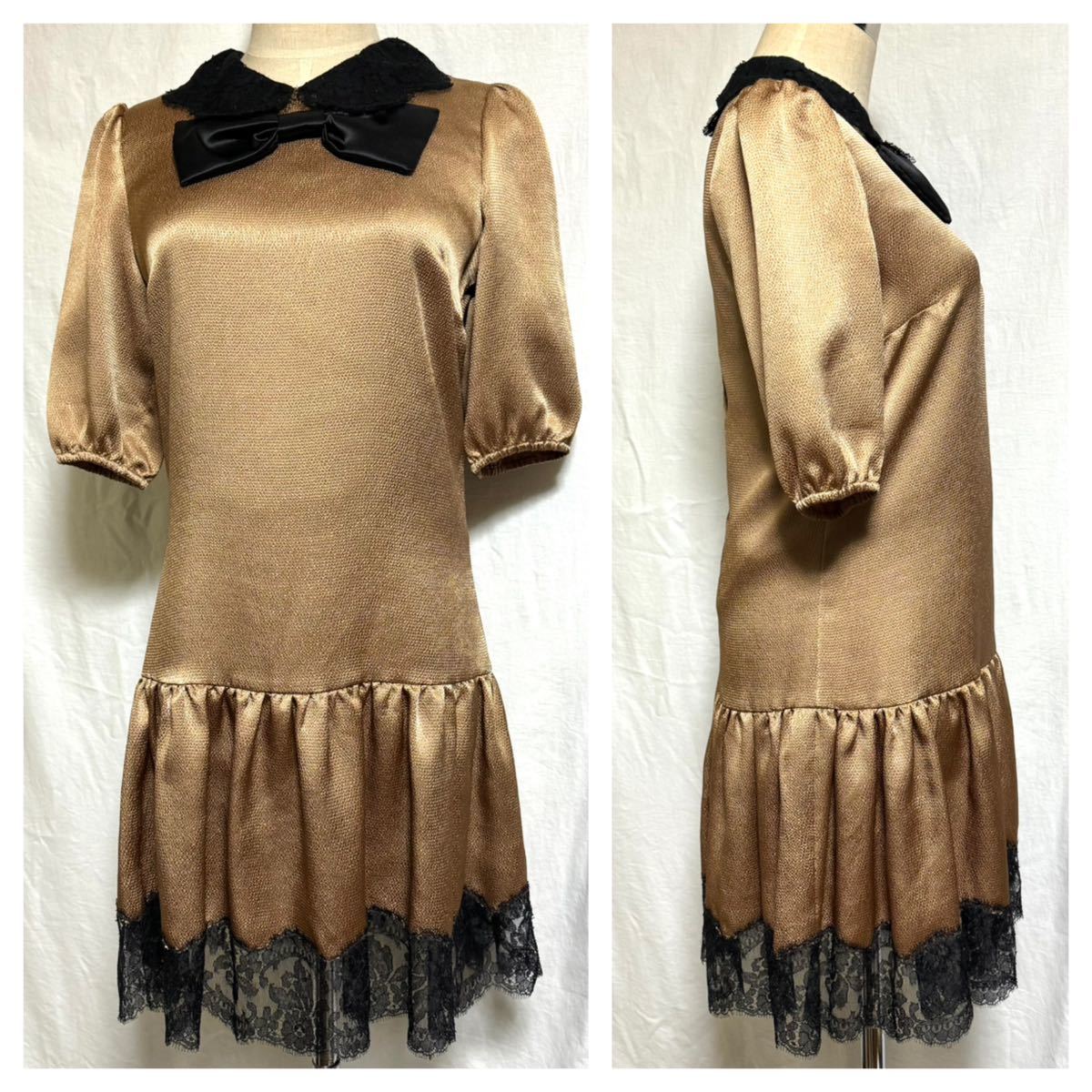 ○本物 極美品 Nikki Reed 着用 ドルチェアンドガッバーナ リボン付き フラワーレース ワンピース ドレス 36 ブロンズ 黒 ドルガバ DOLCE&GABBANA ○色 : ブロンズ・ゴールド・ブラック系 ○サイズ : 36 (9号のトルソーに着せております。) 微細な伸縮性あり 肩幅 37 身幅 43 着丈 中央 襟下 85 袖丈 31ウエスト 42 (CM) ○素材 : ポリエステル75 ビスコース11 コットン7 シルク5 ナイロン2 (%) ○状態 : 写真に写りにくい微細な擦れがございますが全体的にほとんど着用感の感じられない未使用に近いお品です。 ○定価 : 22万円程 女優のニッキーリードさん着用モデルとなります。華やかな光沢感溢れるブロンズカラーに巧みにドッキングされたフラワーレースがとてもエレガントです。襟元の大きめのリボンもとても目を惹きます。トレンドに左右されない長く愛用できる逸品です。 DODBN174 出品物は全て本物ですので安心して、ご入札ください♪ 撮影に使用しておりますハンガー類は付属致しません。付属品がある場合は商品説明に記載させて頂きます。 匿名取引をご希望の場合は質問欄より、ご連絡を頂ければヤフネコに変更させていただきます。 自己紹介を必読の上、ご入札お願いします。 他にも多数、出品しておりますので下記マイ・オークションをクリックして是非ご覧ください。 | |||