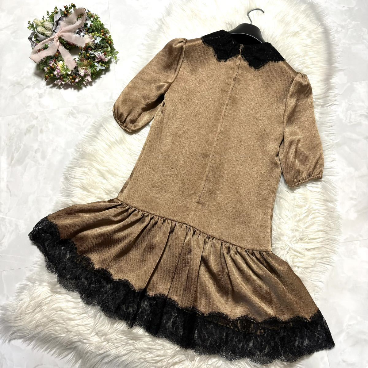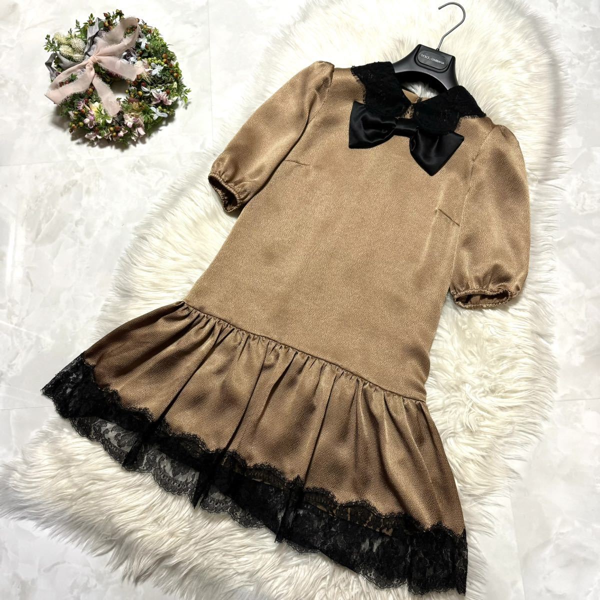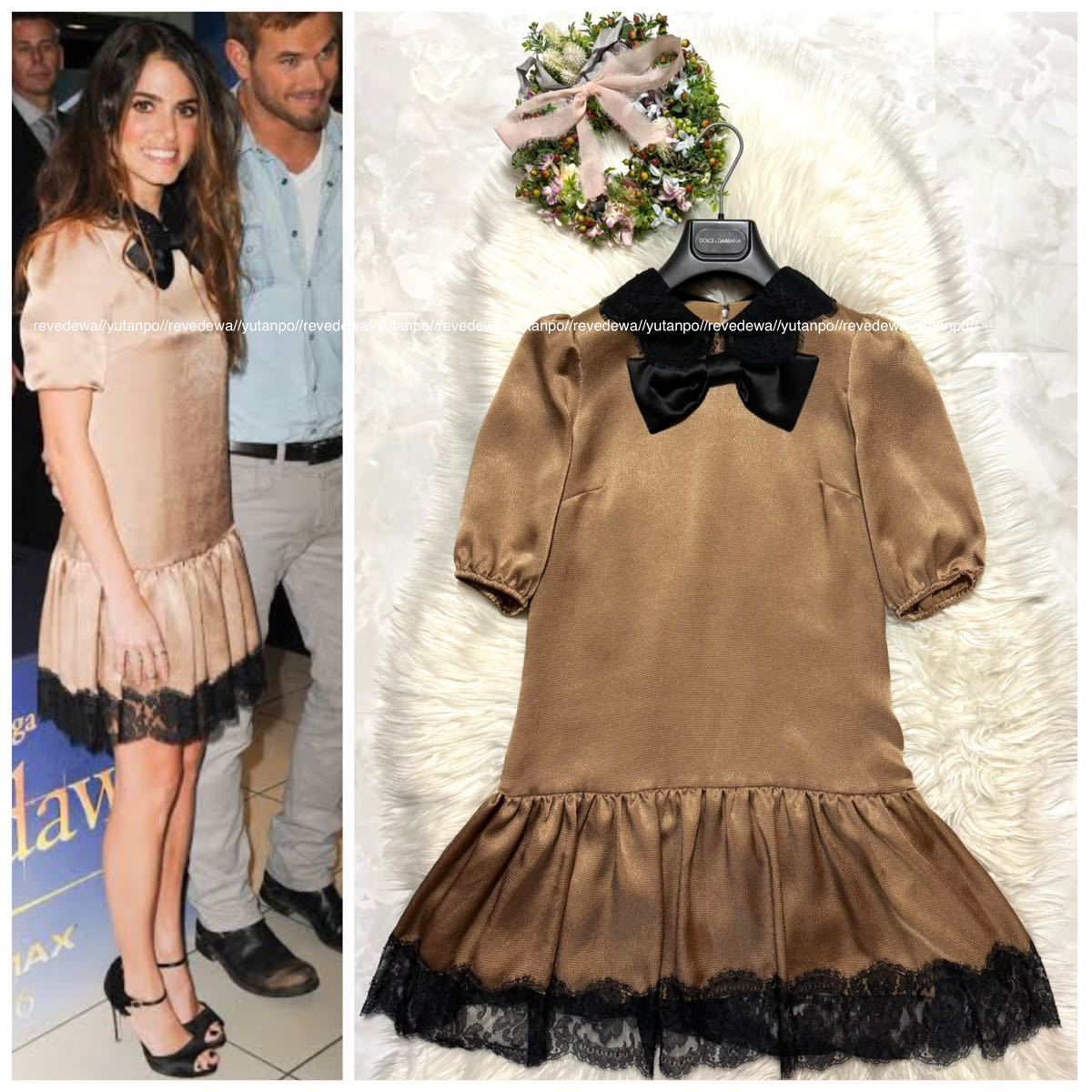 本物 極美品 Nikki Reed着 ドルチェアンドガッバーナ リボン付き フラワーレース ワンピース ドレス 36 ドルガバ (レターパック配送可) | |||