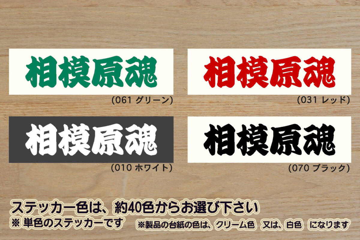 相模原魂 ステッカー Sサイズ 81mm×20mm 500円 です クルマ や オートバイ 以外でも、ノートパソコン や 楽器 など 身近なアイテムのドレスアップにピッタリです ◆ステッカー色 約40色からお選び下さい ※単色のステッカーです ※製品の台紙の色は、クリーム色 又は、白色 になります 指定は出来ません 4枚セットではありません、Sサイズ1枚の価格です 文字の大きさや間隔など、バランスを調整してデザインしています マーキングフィルム(ステッカーシート)は ドイツORAFOL社製 ORACAL651(中期~長期 屋外耐候年数4~5年) ※1を使用しています 多少伸び縮みするのでしわになりにくく、車のボディーなど緩やかな曲面への施行も可能です また、施工しやすいようにステッカーの上から転写透明フィルムを貼って仕上げています ステッカーを転写透明フィルムごと貼付け 転写透明フィルムのみ剥がすと パーツがばらばらにならずに施工出来ます | ||||||||||||||||||