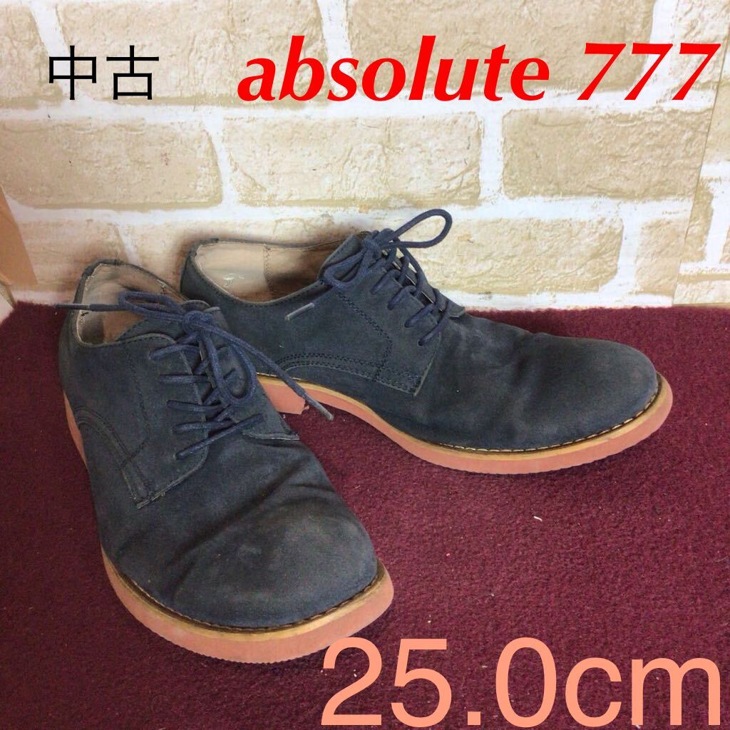 【売り切り!送料無料!】A-353 absolute 777!カジュアルシューズ!ネイビー!紺色!25.0cm!レースアップシューズ!普段ばき!中古!