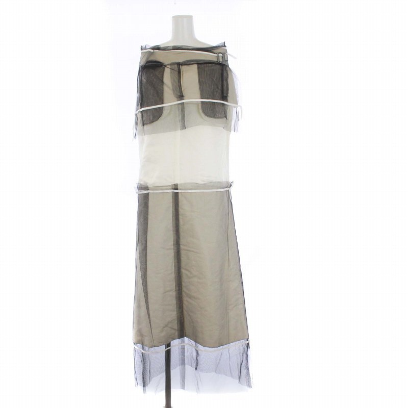 未使用品 Maison Margiela TULLE MIDI DRESS チュールミディドレス ノースリーブワンピース ロング 中綿 38 M アイボリー 黒