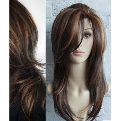 【ブラウン】ウィッグ ロング カーリーストレート ハイライト グラデーション エクステ メッシュ ヘアネット コスプレhcy1558