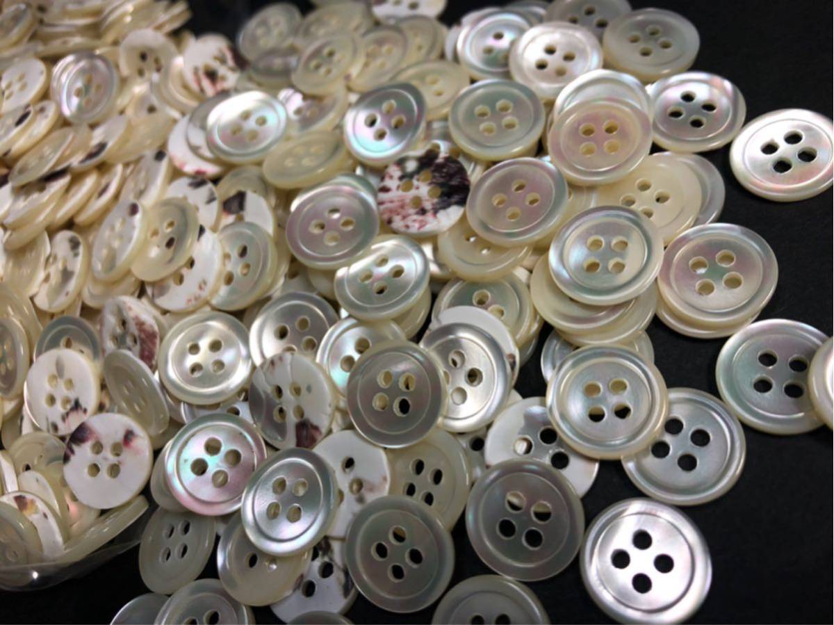高瀬貝ボタン特有のオフホワイトの光沢が美しくワイシャツやブラウスなどに良く似合います。