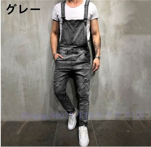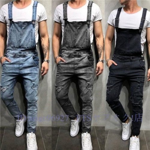 A7211★新品 オーバーオール デニムパンツ つなぎ オールインワン ダメージ ペンシルパンツ サロペットパンツ スキニー ストリート ブルー