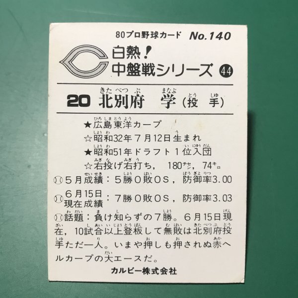 1980年 カルビー プロ野球カード 80年 白熱!中盤戦シリーズ 初版黒版 140番 広島 北別府   【766】