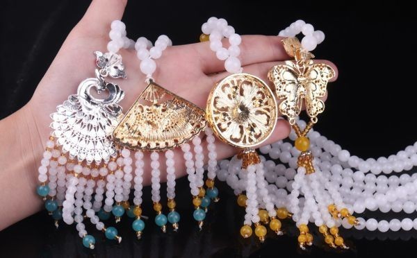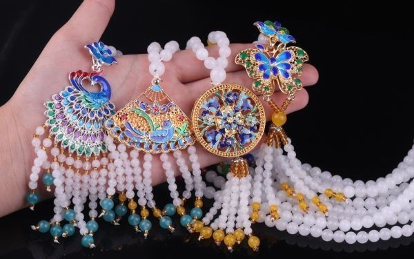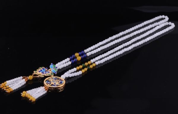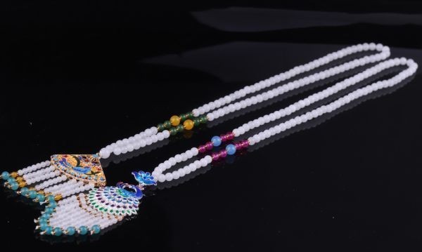 海外発送 天然石 新疆 ホータン玉 白玉 ピーコック 孔雀 ネックレス タイプ1 ペンダント長さ約10㎝ チェン長さ約70㎝