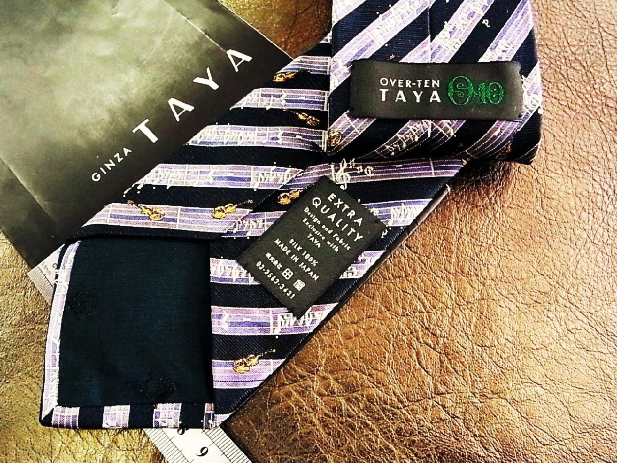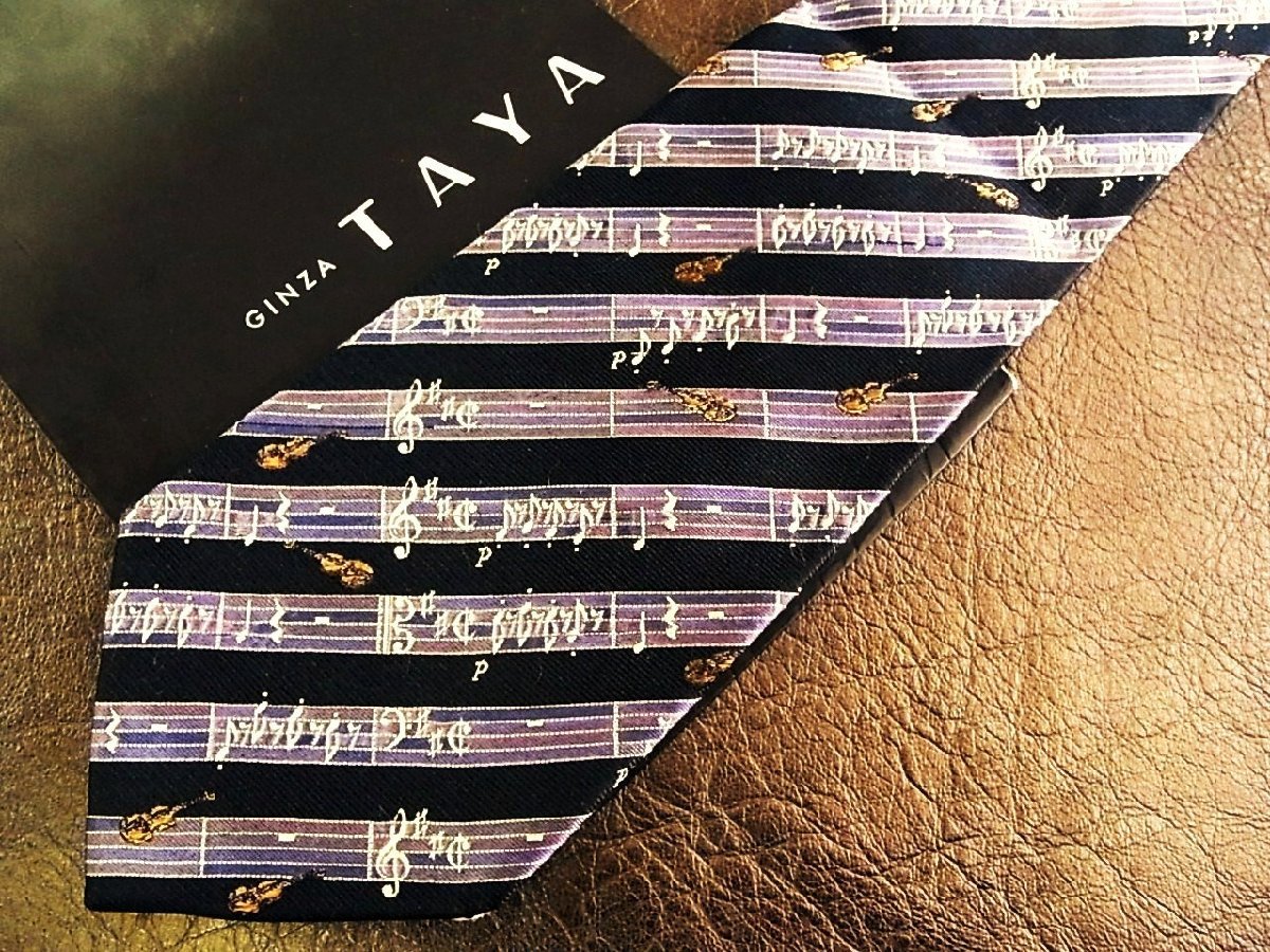 ★並品★4R01685【TAYA】銀座 田屋「バイオリン 楽器 五線譜 音符 柄」ネクタイ