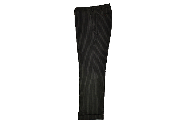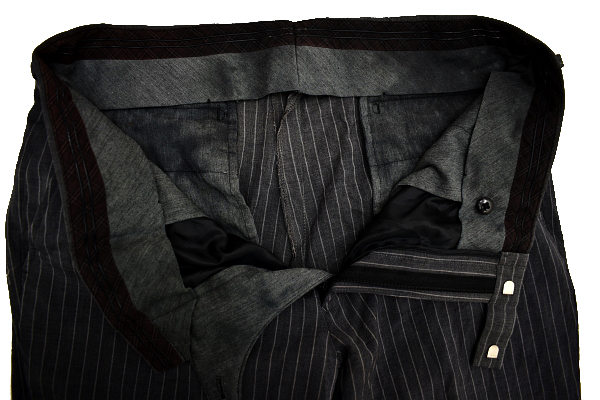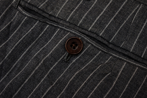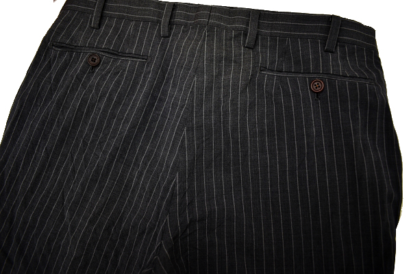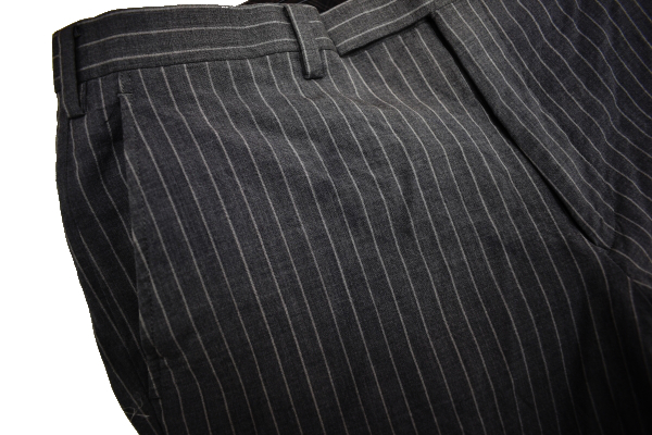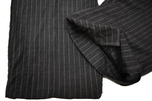 グレーカラー ストライプ スラックスパンツ 裏地前ひざ下まで ウエスト内側滑り止めあり こちらはホースマークの無い商品となります。