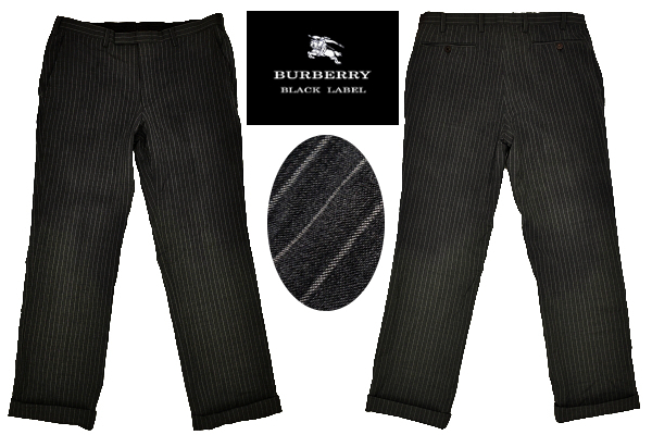 B-0130★BURBERRY BLACK LABEL バーバリー ブラックレーベル★正規品 日本製 グレー灰色 ストライプ スラックスパンツ 82cm