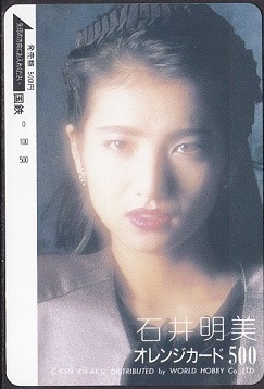 国鉄 発行の オレンジカード 『 石井明美 / KEN KIKAKU DISTRIBUTED by WORLD HOBBY Co.LTD. 』 フリー 500円券です。