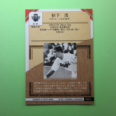 BBM2011 東京六大学野球カード 英雄伝説 #033 杉下 茂