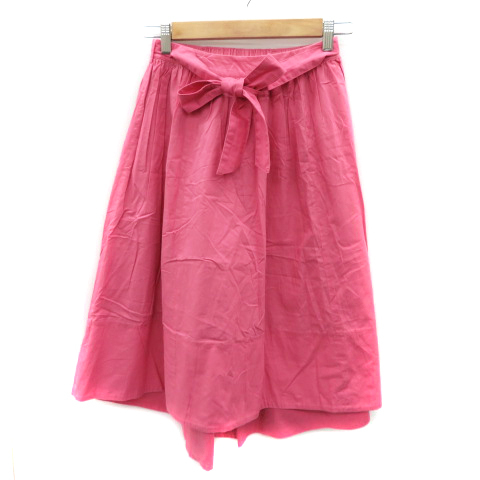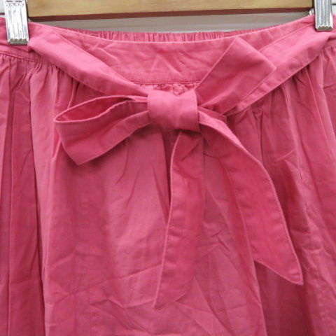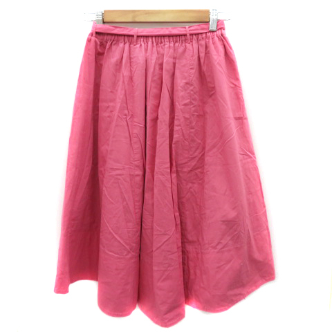ナチュラルビューティーベーシック フレアスカート ギャザースカート ミモレ丈 ウエストリボン 無地 XS ピンク /YK19 レディース