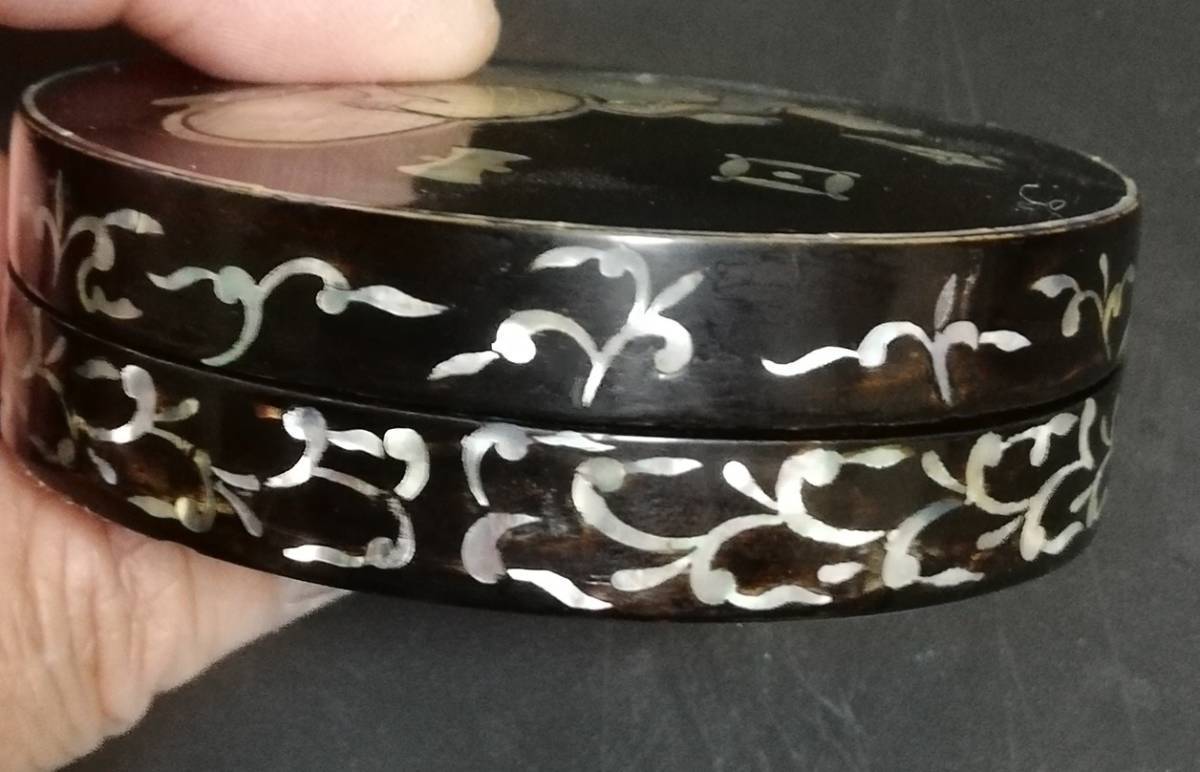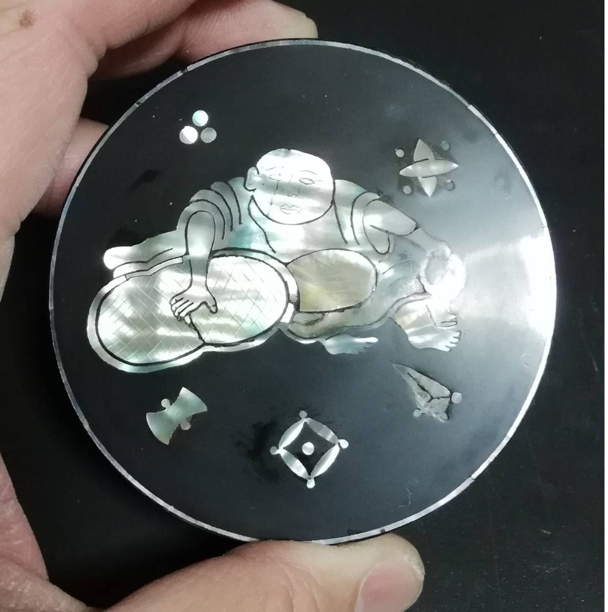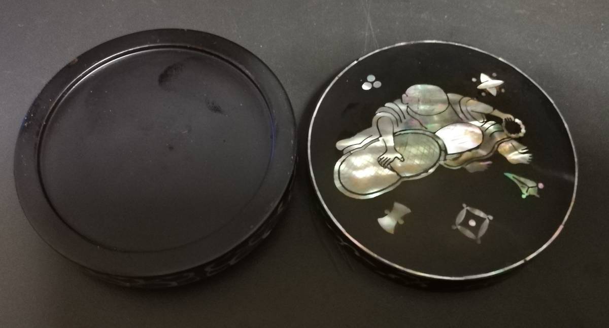 清朝時代 螺鈿 羅漢図 円香合 検 茶道具煎茶道具中国古玩台湾煎茶民藝美術品李朝高麗新羅清朝