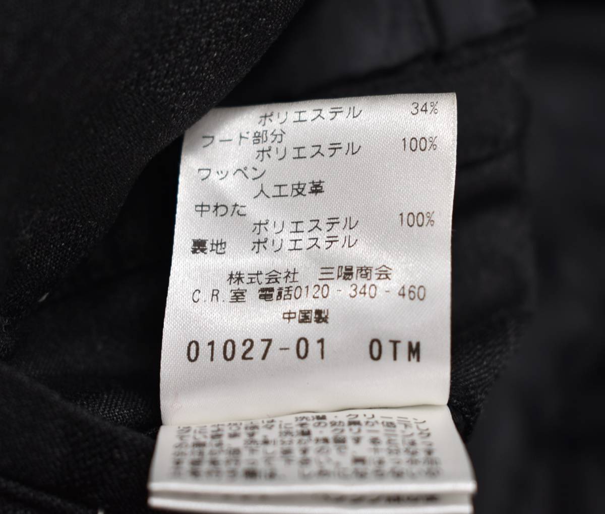 サイズ表記LL、色チャコール系、素材毛66%ポリエステル34%、中国製