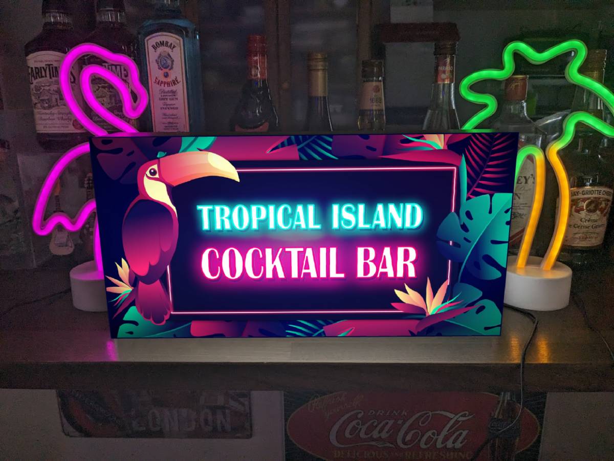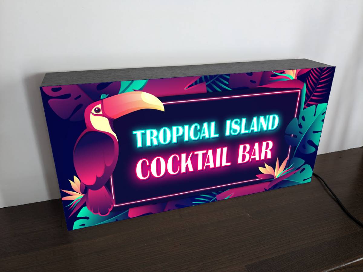 【文字変更無料】トロピカルアイランド カクテルバー スナック パブ ハワイ 店舗 自宅 パーティー イベント 照明 看板 置物 雑貨 ライトBOX