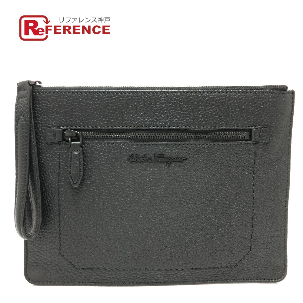 Salvatore Ferragamo サルヴァトーレフェラガモ カバン ロゴ クラッチバッグ ブラック メンズ【中古】