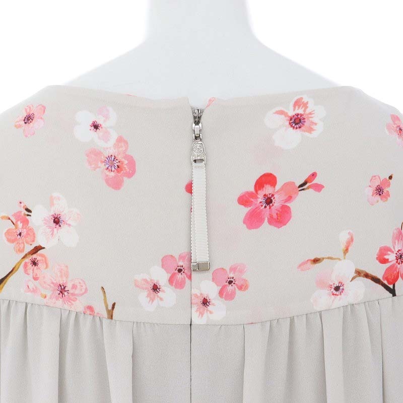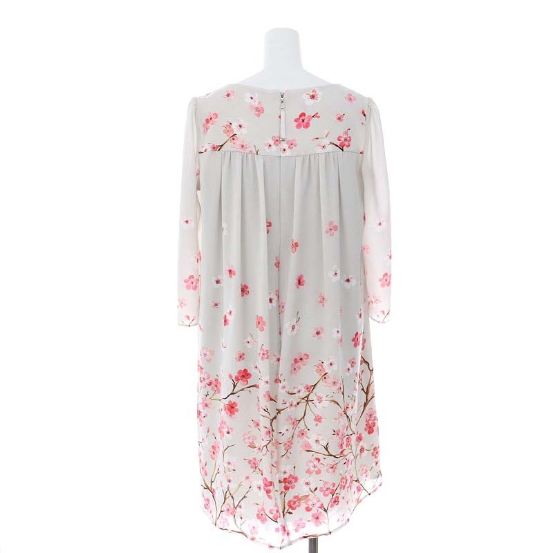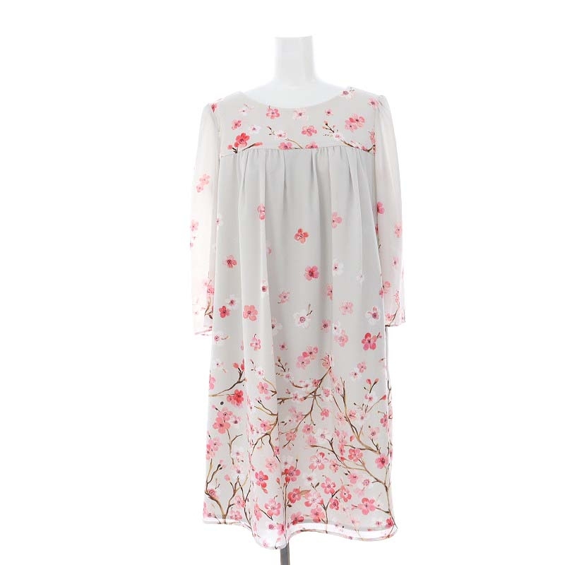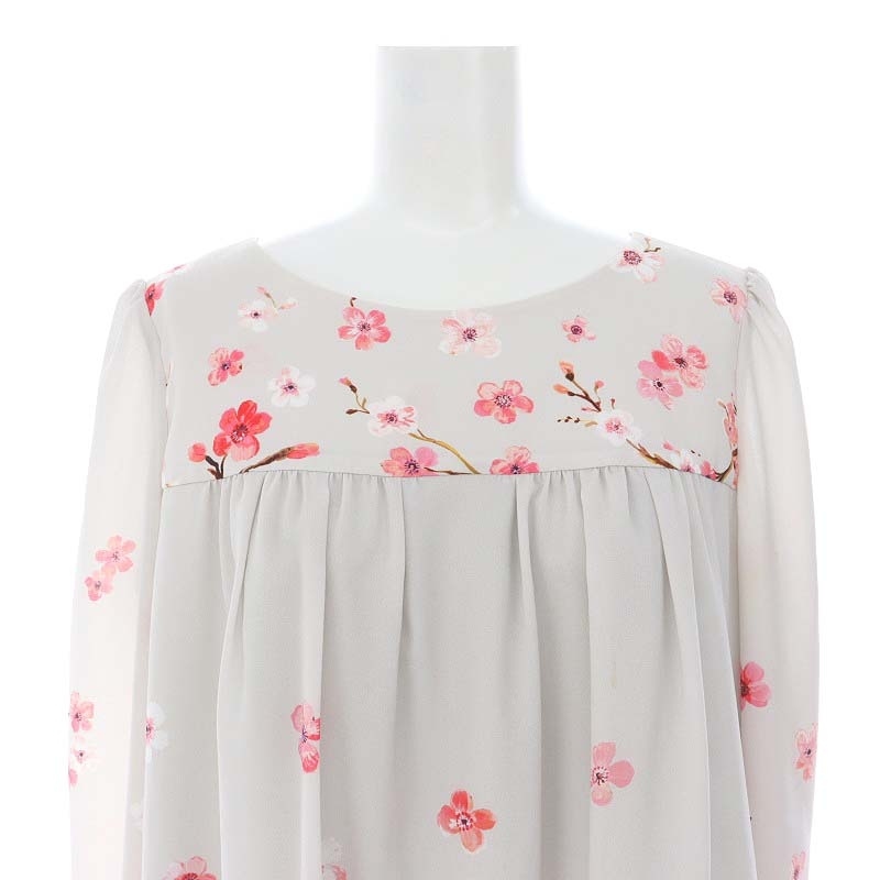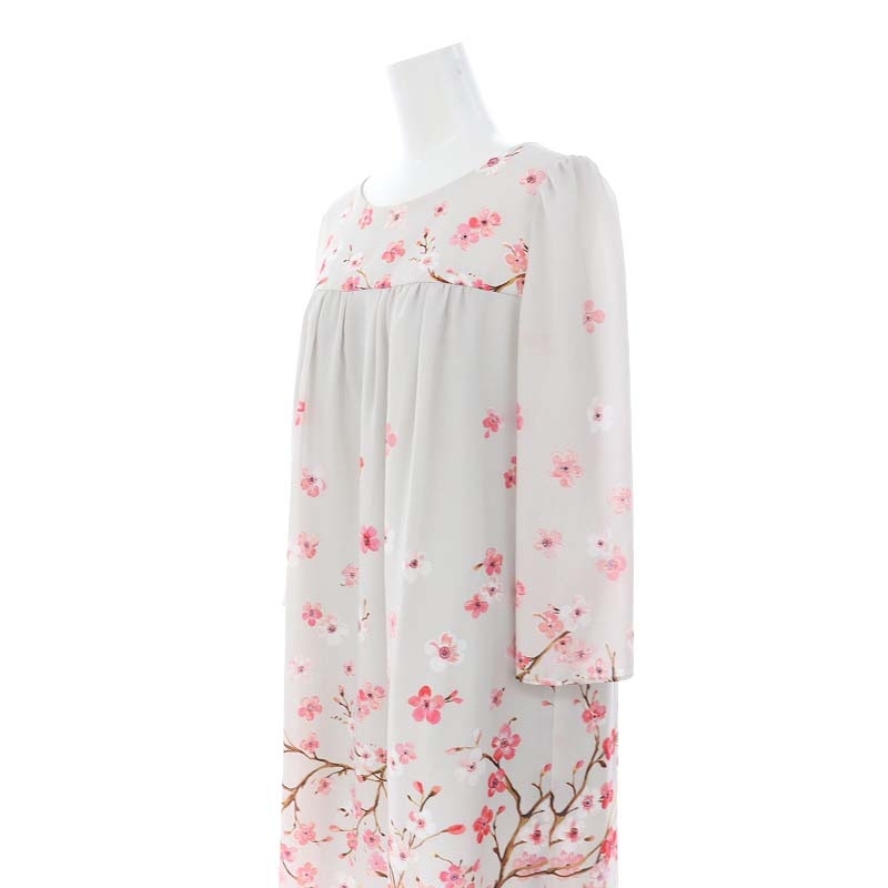 コトゥー COTOO 花柄 ギャザー ワンピース 膝丈 長袖 38 ライトグレー ピンク マルチカラー /ES ■OS レディース