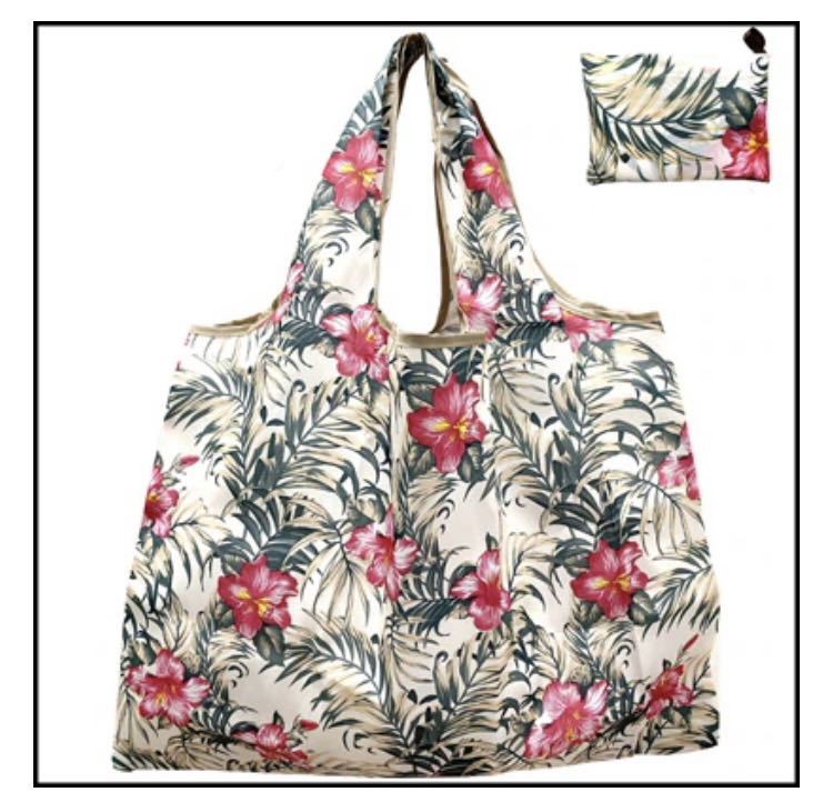 大容量 折りたたみ エコバッグ ハイビスカス柄 コンパクト 軽量 おしゃれ ショッピングバッグ