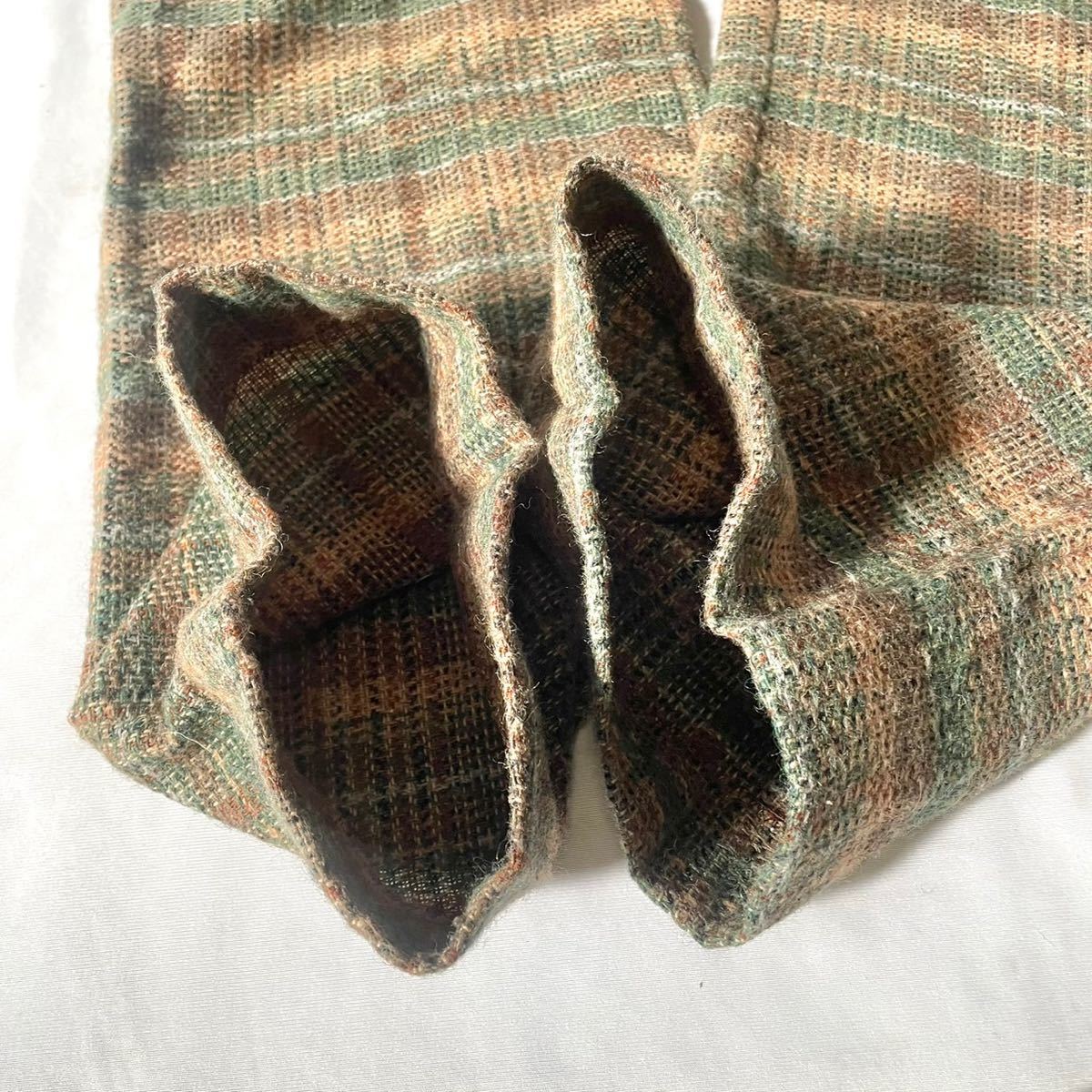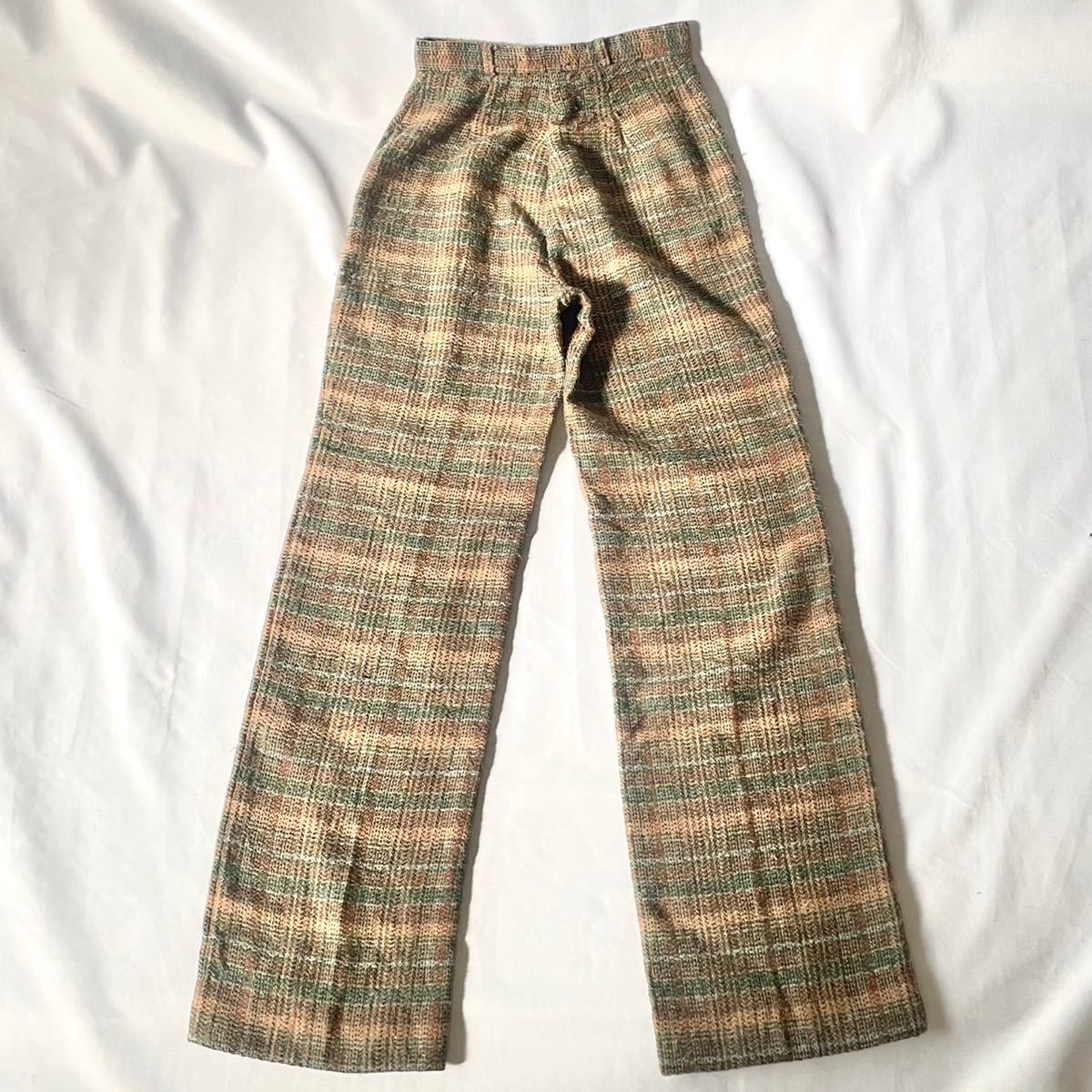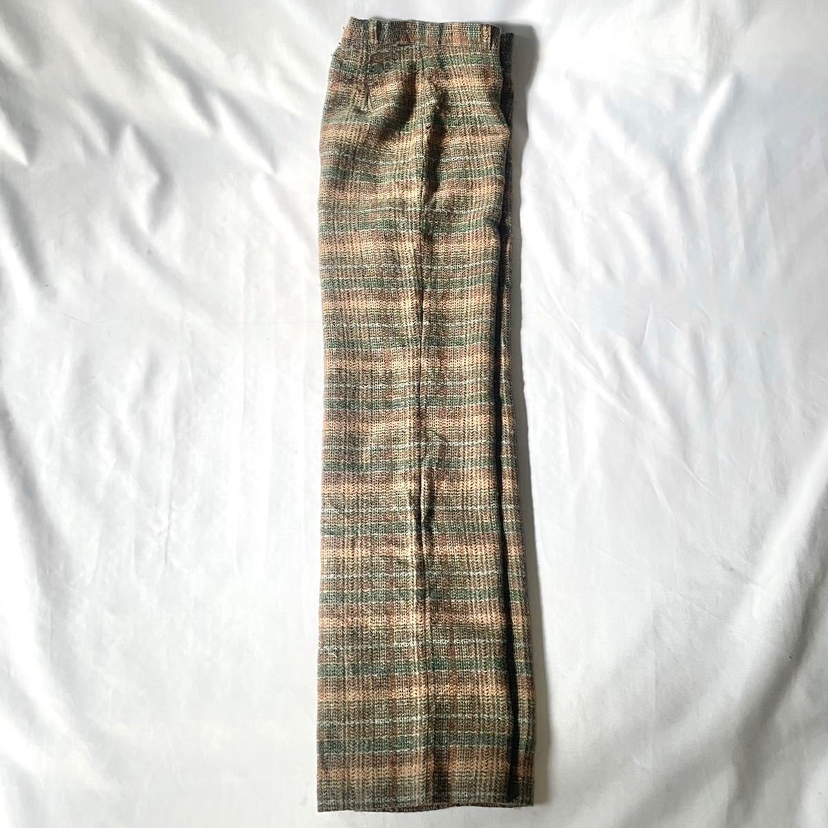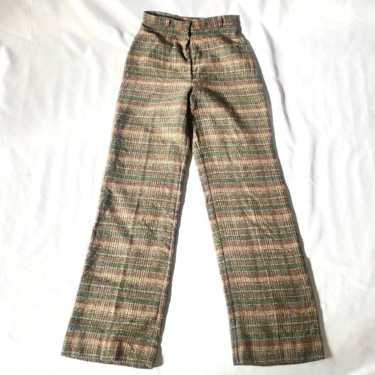 7-80年代ヴィンテージアメリカ製 ウール ポリエステル ナイロン素材ベージュチェック柄ハイウエストバギーパンツです。