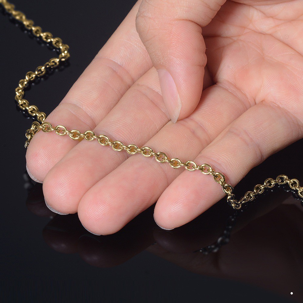 | 小豆(あずき)チェーンは小判チェーン、ケーブルチェーンとも呼ばれ、あづきのような輪が連なった定番のネックレスです。 ※イオンプレーティング(IPメッキ)とは、金属イオンと不活性ガスを反応させた化合物を製品に蒸着させるコーティングで、ガスの比率でカラーを調整します。従来の鍍金加工に比べて表面耐久性、密着性、工程の安全性が飛躍的に向上しております。 |