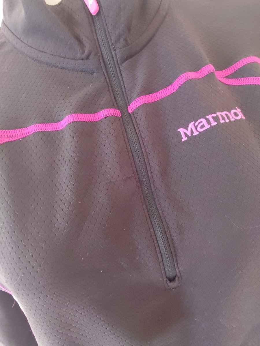 Marmot マーモット のハイテク素材ヒートナビを使用したハーフジップのロングスリーブシャツです。