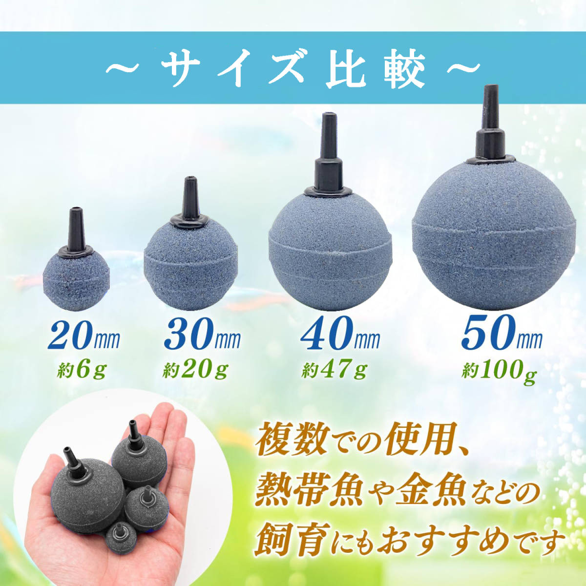 ・小さめサイズの20mm玉ですので、可愛い水槽で飼うようなメダカや、