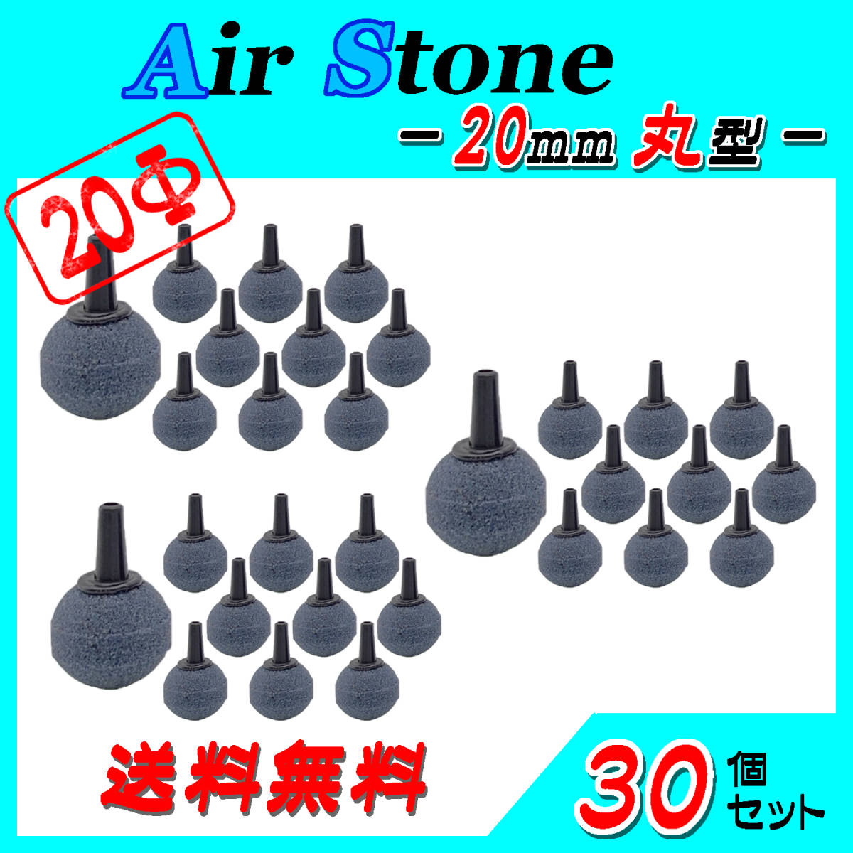 ☆エアーストーン☆20mm玉~30個セット☆ブクブク 熱帯魚 めだか らんちゅう 酸素供給に