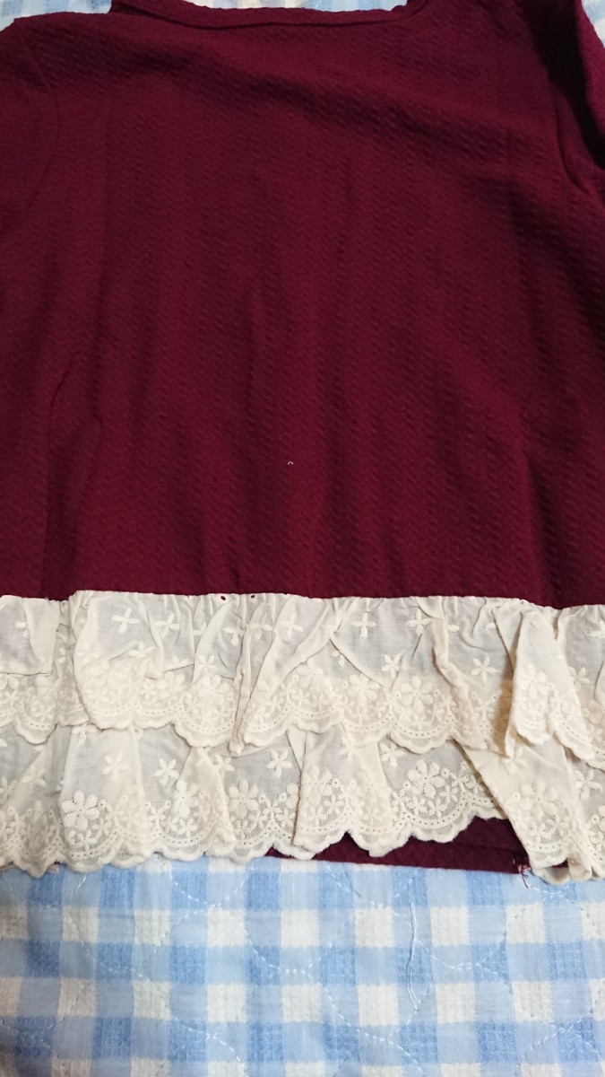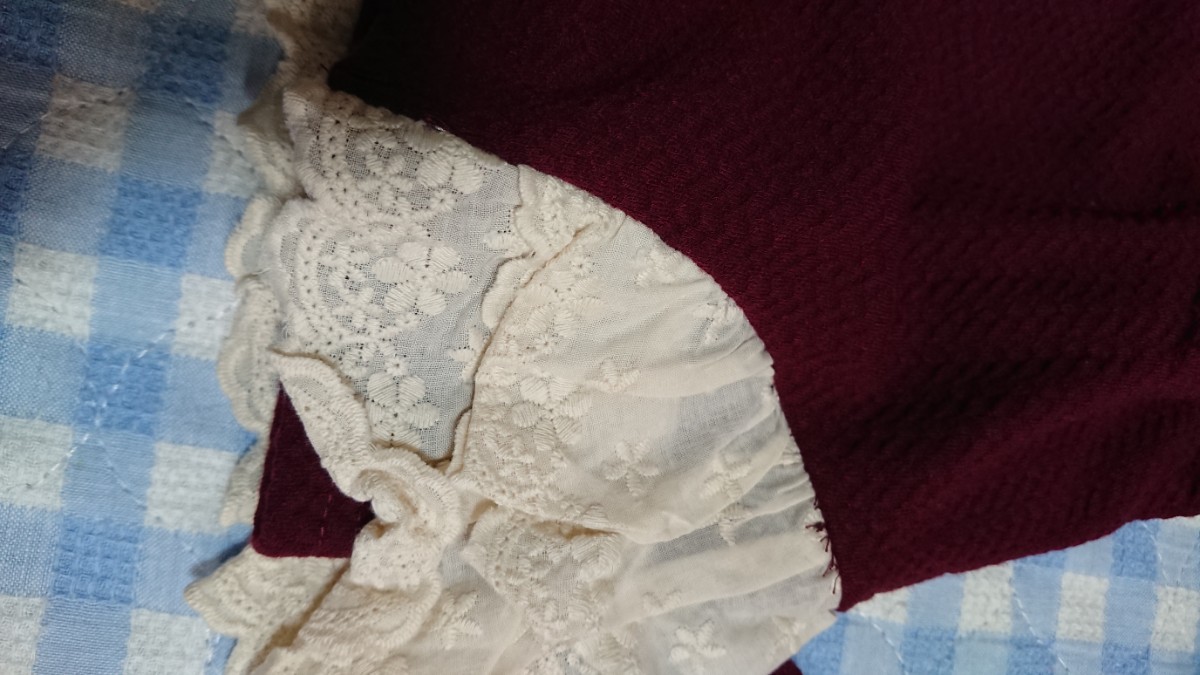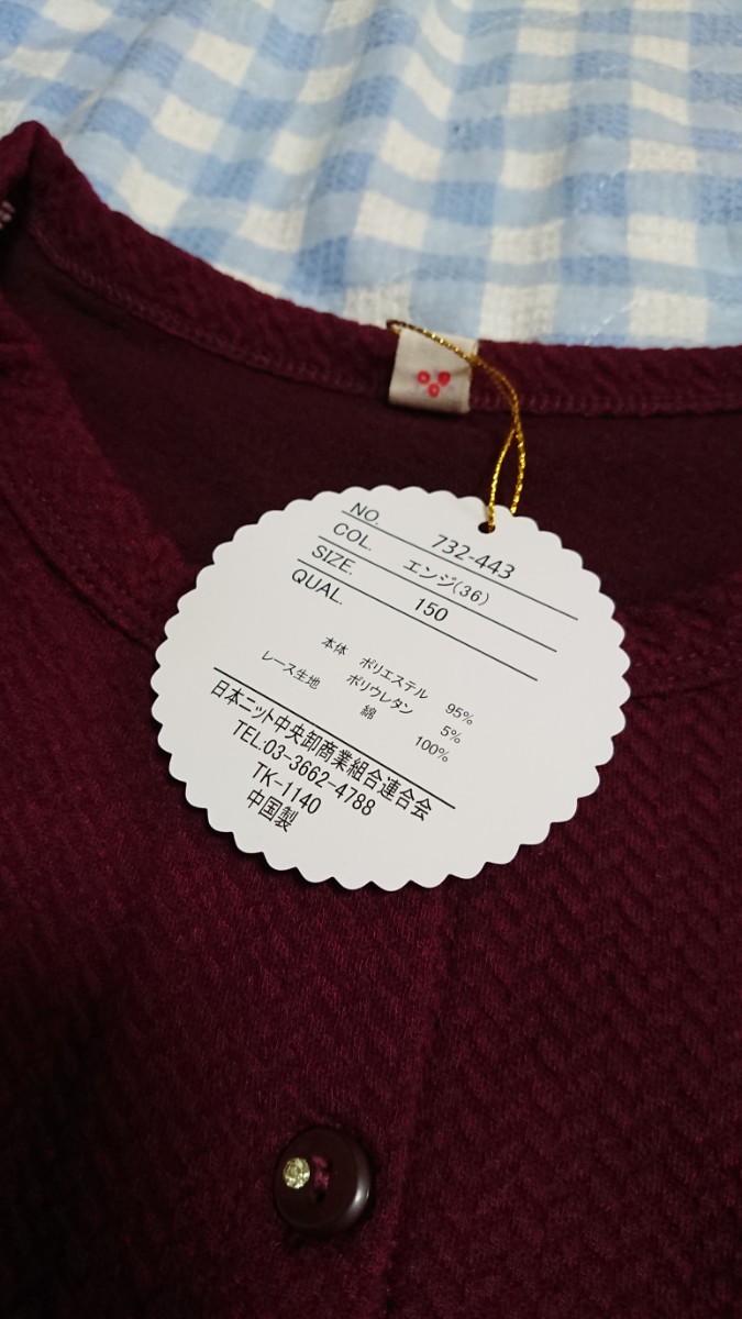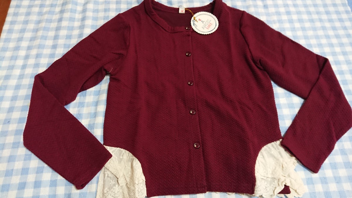 @♪170☆保管品・未使用品☆ANGELLOVE☆ジャガードカットソー地カーディガン レース×エンジ150