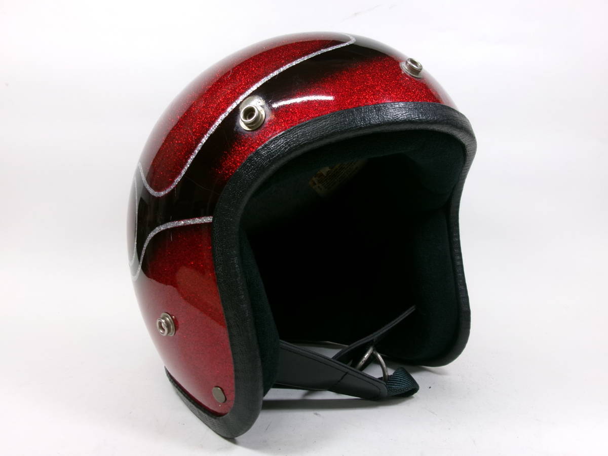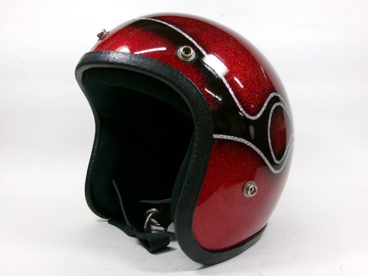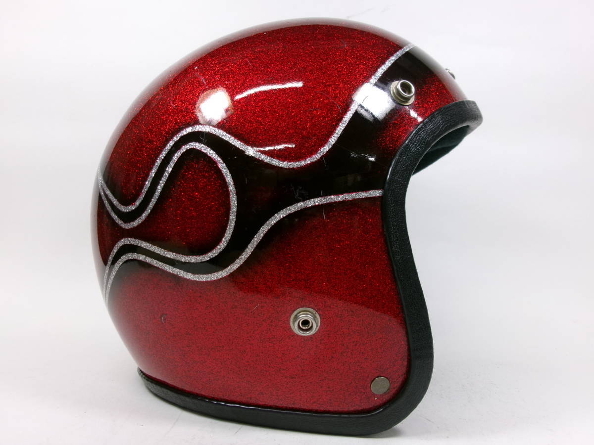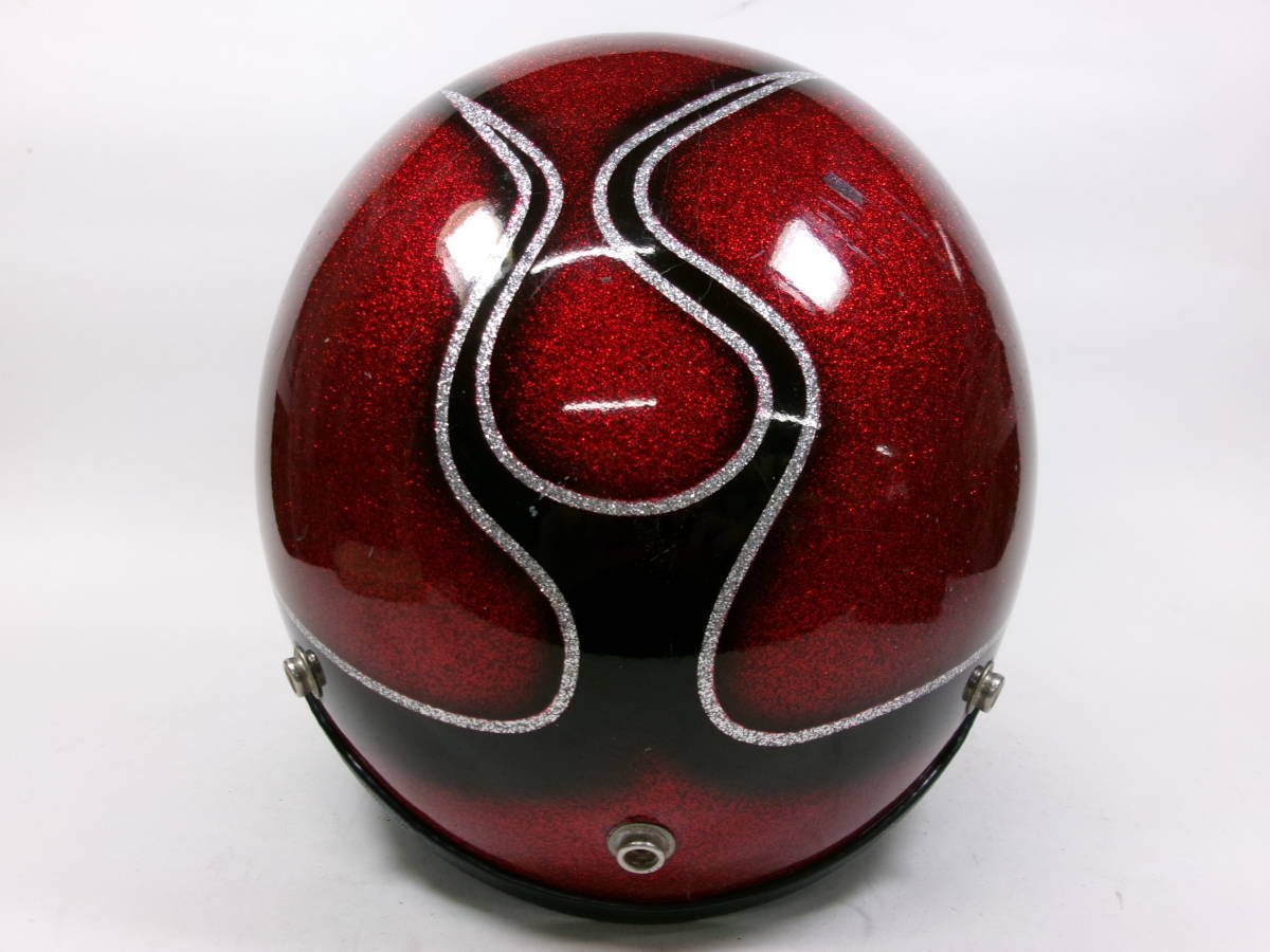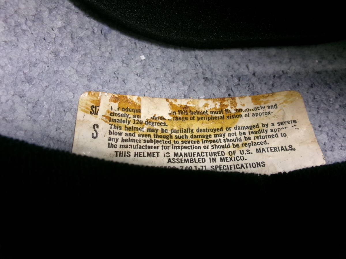 ■外装状態: 傷や経年によるペイントひびはありますが、全体的に艶もある状態です。 ■内装状態: 新しい生地&スポンジでリペア済みなのですぐに使用可能です。 ■サイズ: 表記 Sですが内装加工済みなのでMサイズ (約58~59cm)位です。 若干の誤差はご了承下さい。 ■コメント: 70年代初期頃の CROWN CX901 ジェットヘルメット FLAMES柄です。 500TX(Mシェル)との比較画像をご覧のとおり、帽体も小さく、内装は加工済みなので目深に被れシルエットは最高にかっこいいです。 軽量で被り易いヘルメットです。 お好きな方はこの機会に是非! ※装飾用です。公道での使用はお控えください。 |