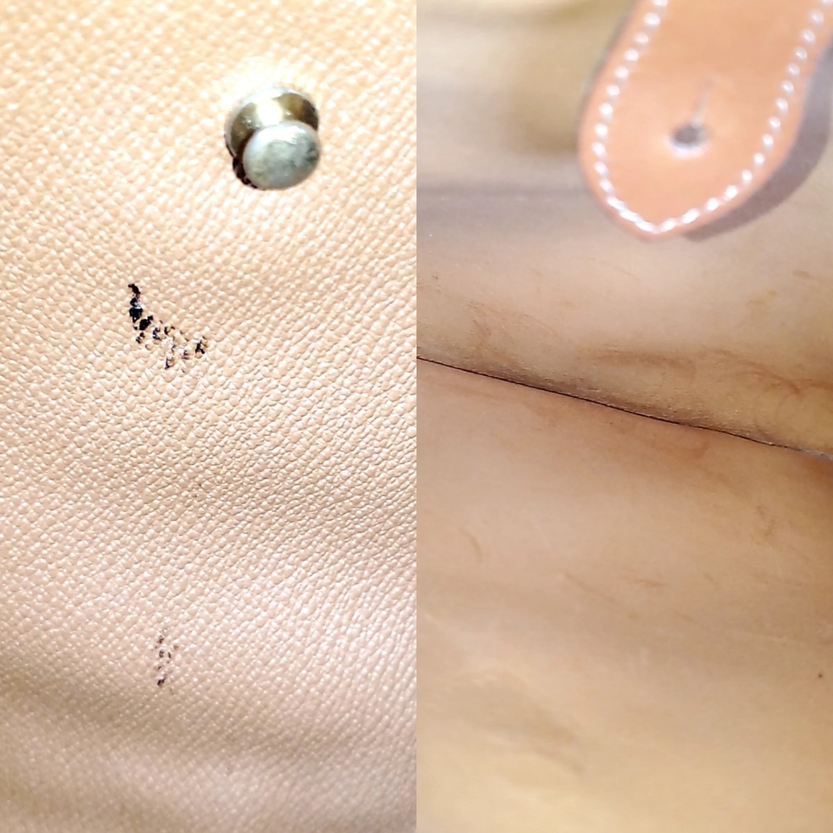 内側に黒い汚れや内側ポケット内にシミあり。