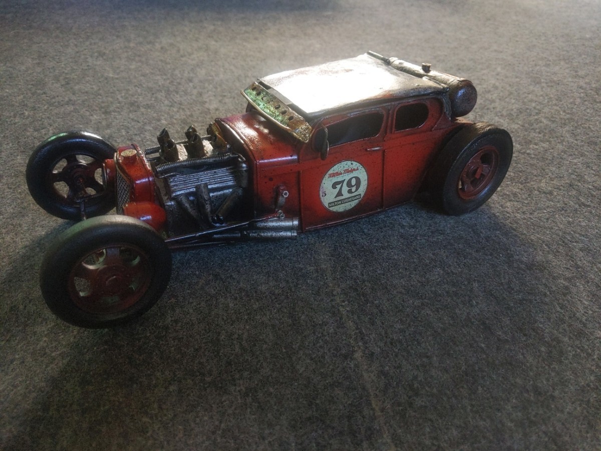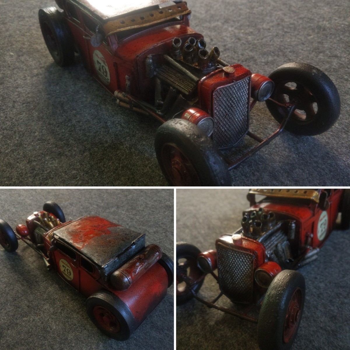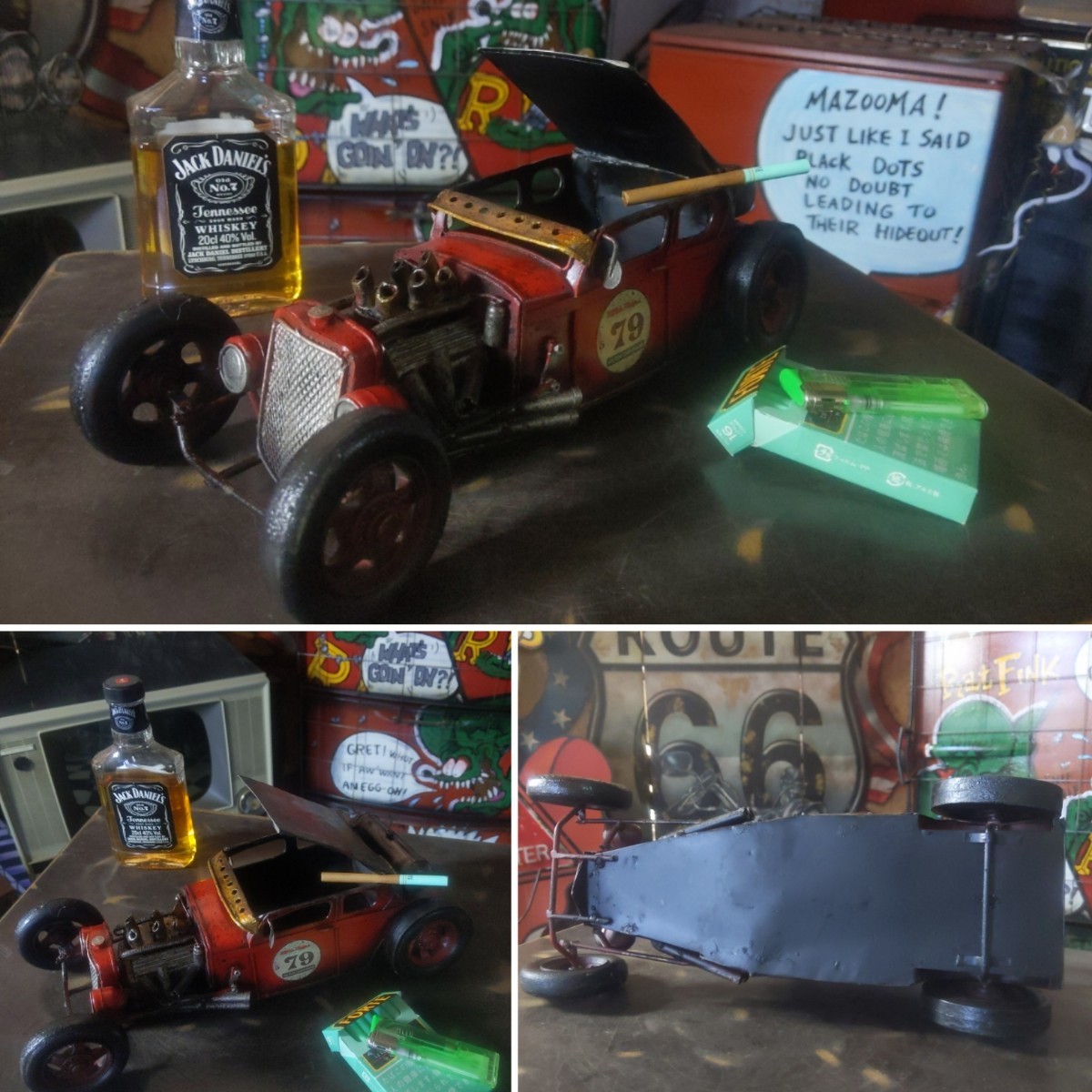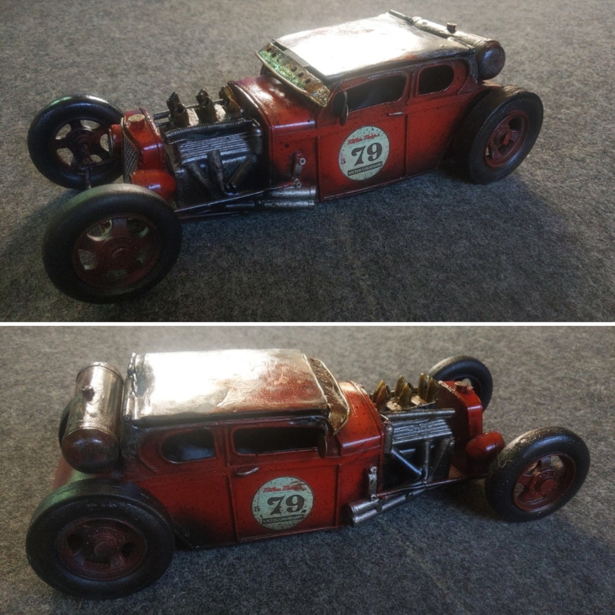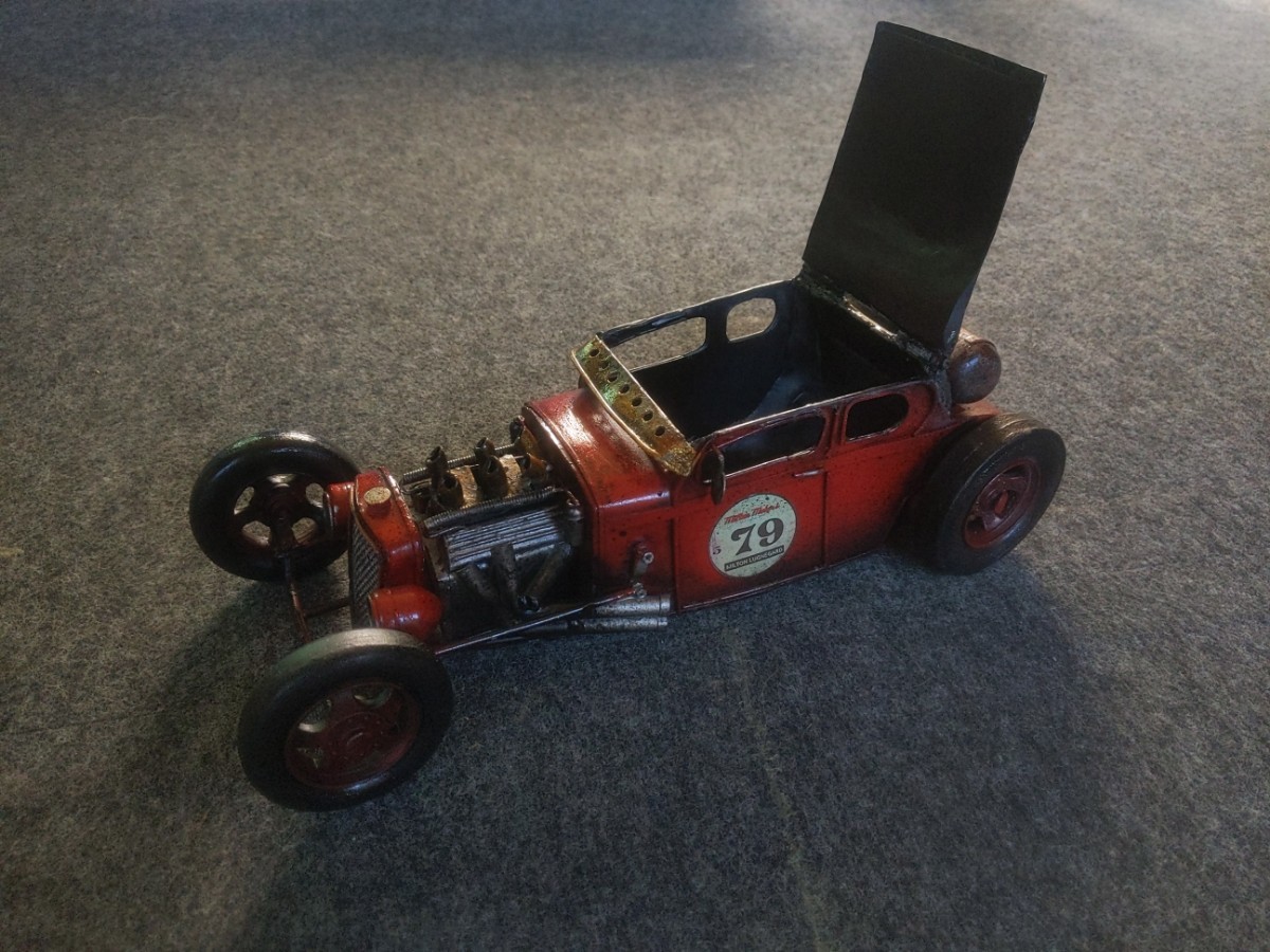 テレビ番組等のセットには必ず何台かは見掛けるブリキカーのインテリア装飾美術の小物です。