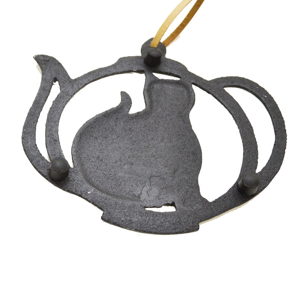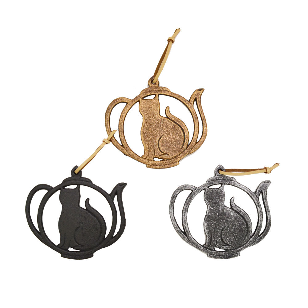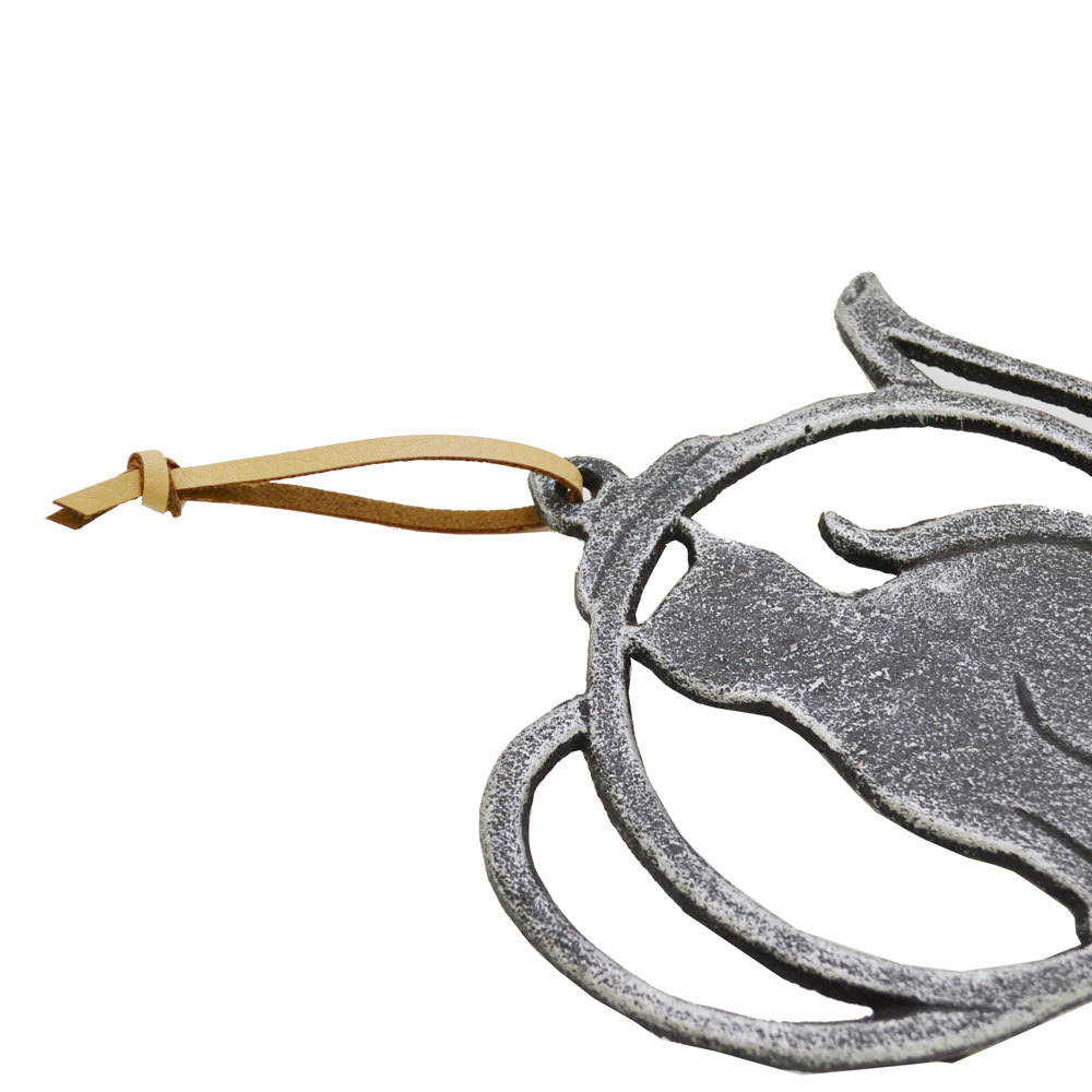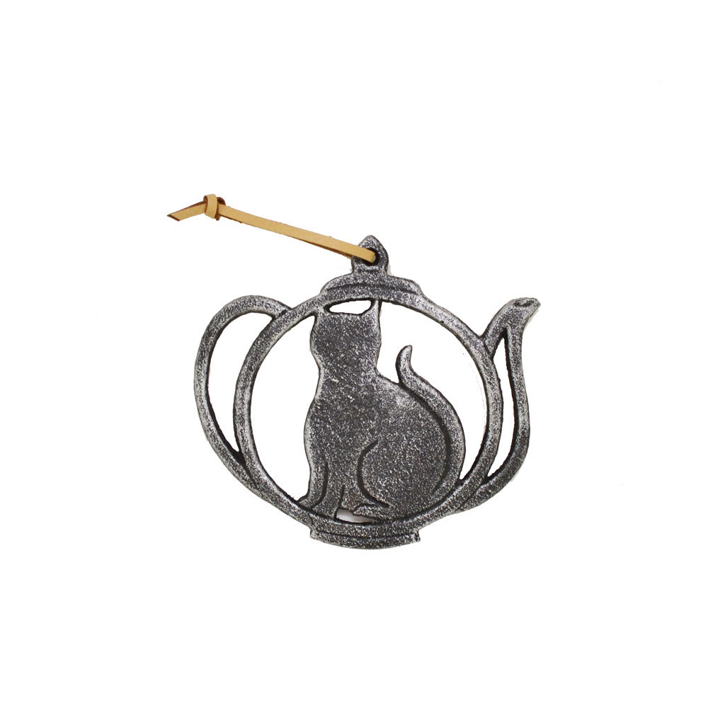 鉄猫鍋敷き 壷型 銀 壁掛け 紐付き ねこ形 アイアン ネコ