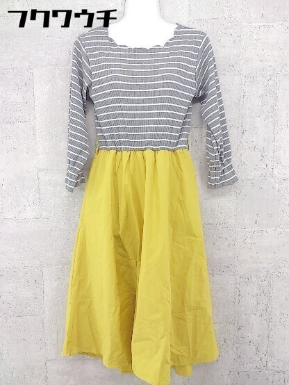 ◇ natural couture ナチュラルクチュール 切替 長袖 膝下丈 ワンピース サイズF グレー マスタード レディース