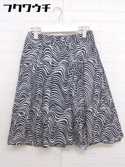 ◇ MICHAEL KORS マイケルコース 総柄 膝丈 フレア スカート サイズ2 ネイビー ホワイト レディース