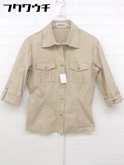 ◇ ◎ IMAGE イマージュ ストレッチ 七分袖 シャツ サイズ9 ベージュ レディース