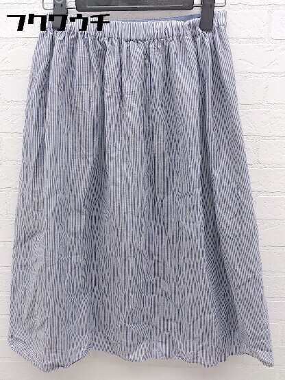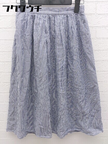 ◇ SHIPS シップス ストライプ 膝下丈 フレア スカート ライトブルー ホワイト * 1002799797627