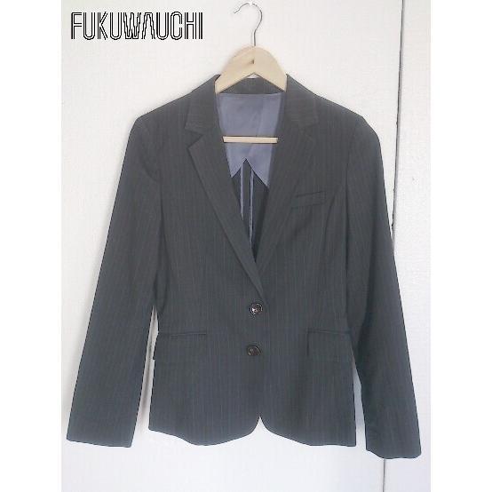 ◇ green label relaxing UNITED ARROWS ストライプ シングル 1B 長袖 テーラード ジャケット 40 グレー レディース