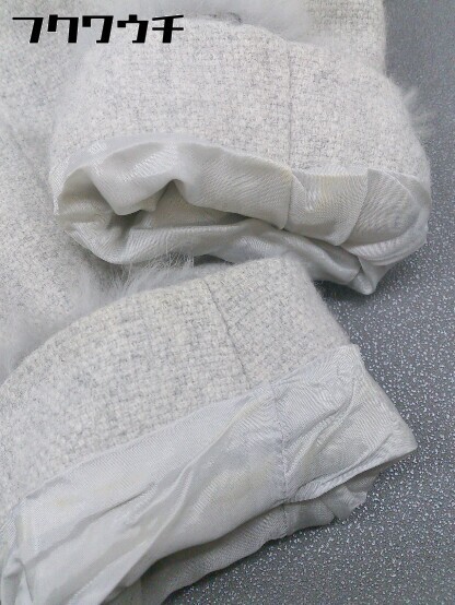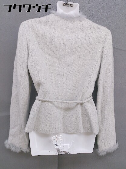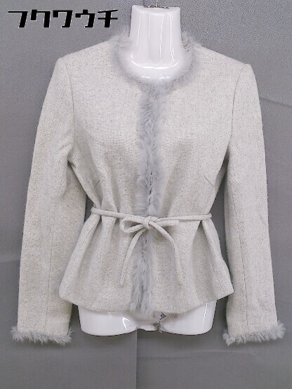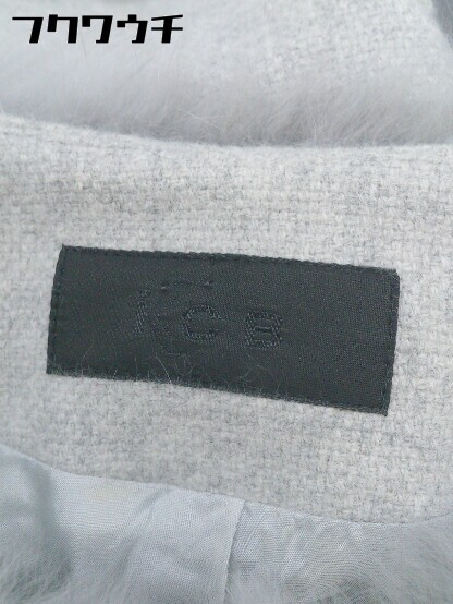 ◇ ◎ ICB ウエストリボン付 ラビットファー 切替 アンゴラ混 ノーカラー ジャケット サイズ9 グレー レディース