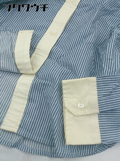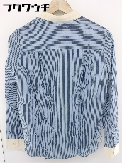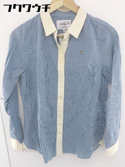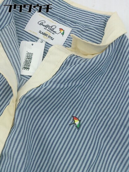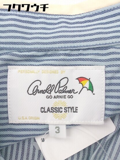 ◇ Arnold Palmer アーノルドパーマー ストライプ ロゴ刺繍 長袖 シャツ ブラウス サイズ 3 ブルー アイボリー レディース