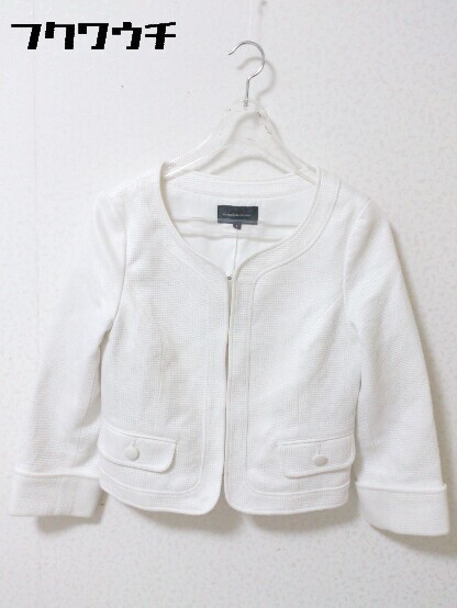 ◇ QUEENS COURT クイーンズコート 七分袖 ノーカラー ジャケット サイズ1 ホワイト レディース