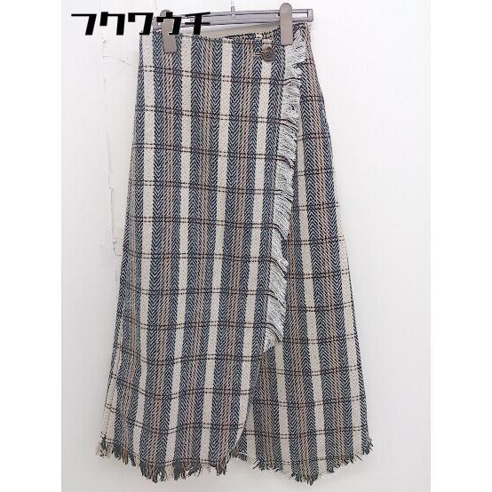 ◇ PAGEBOY チェック フリンジ ニット ロング ラップ スカート サイズ F ベージュ ブラック マルチ レディース