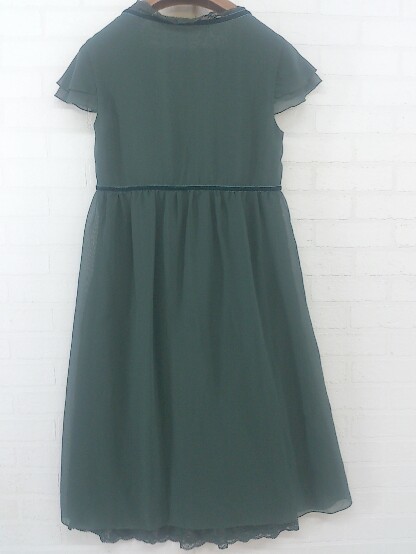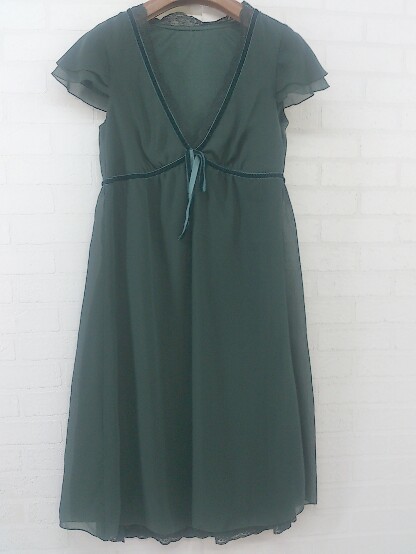 ◇ ROPE PICNIC ロペピクニック レース リボン フレンチスリーブ 膝丈 ワンピース サイズ38 グリーン レディース P