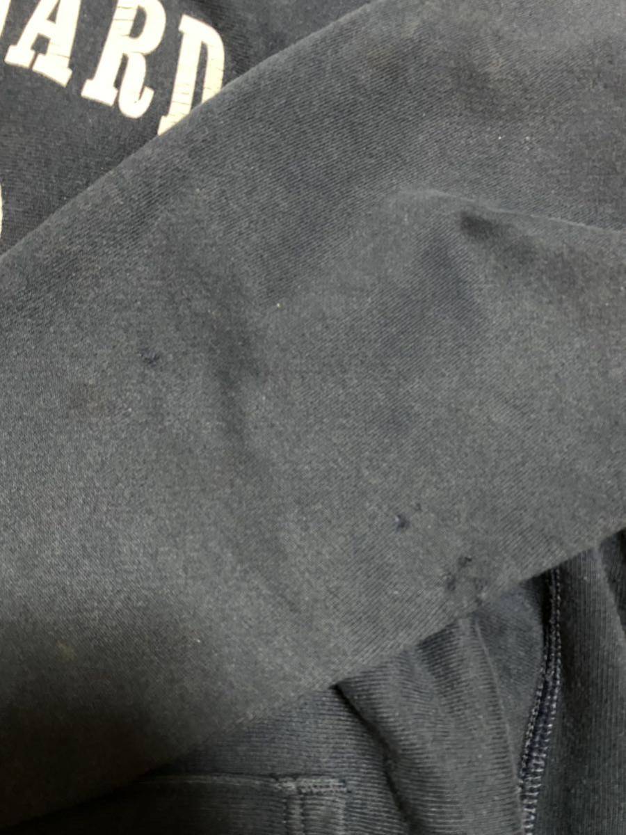 左袖部分に数か所小さいほつれがあり、裏側から糸で縫ったリペア跡あり。