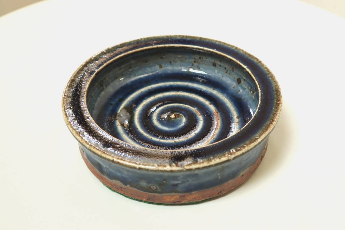 シリーズ・名称:Ateljeアトリエ製ユニークピース フラットボウル デザイナー:Marianne Westman マリアンヌ ウェストマン メーカー:Rorstrand ロールストランド 製造年代:1960年代 サイズ: 約 Φ15,1×H4,2cm 素人の平置採寸・計量ですので、誤差はご了承下さい。 素材:陶磁器 カラー:アイアンブルー・ココナッツブラウン 他 お使いのモニターにより多少色目が異なると思いますが、ご了承下さい。 バックスタンプ:(3個の王冠とR) MW ATELJE SWEDEN その他:裏底面に保護用フェルトが貼られています。 ロールストランドのアート部門「Ateljeアトリエ」の作品で、ブツブツした粗い 質感の素材を使用した厚みと重みの有る平鉢です。 内底面に立体的な螺旋模様 が施されただけのシンプルなデザインには、素朴で温かな雰囲気が感じられます。 |