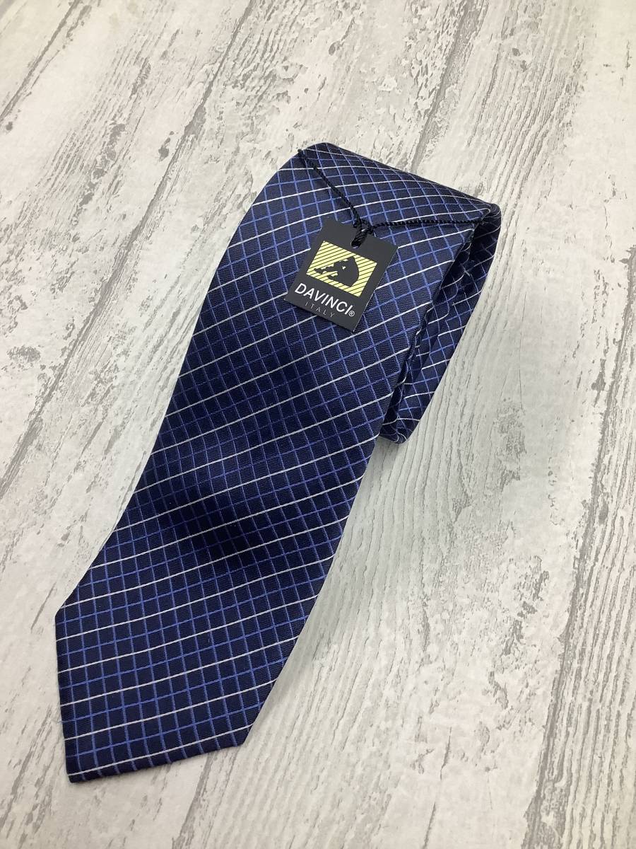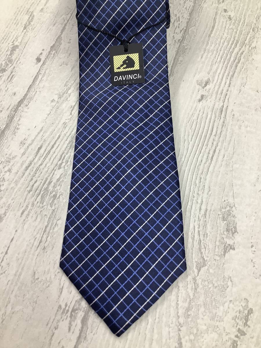 新品未使用★DAVINCI ダヴィンチ かわいいチェック シルク100%ロングサイズネクタイ お洒落ネイビー 少し長い目サイズ
