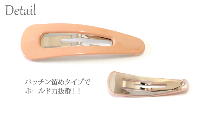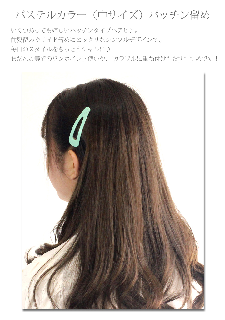 商品説明 | いくつあっても嬉しいパッチンタイプヘアピン。 前髪留めやサイド留めにピッタリなシンプルデザインで、毎日のスタイルをもっとオシャレに♪ おだんご等でのワンポイント使いや、カラフルに重ね付けもおすすすめです^-^ |