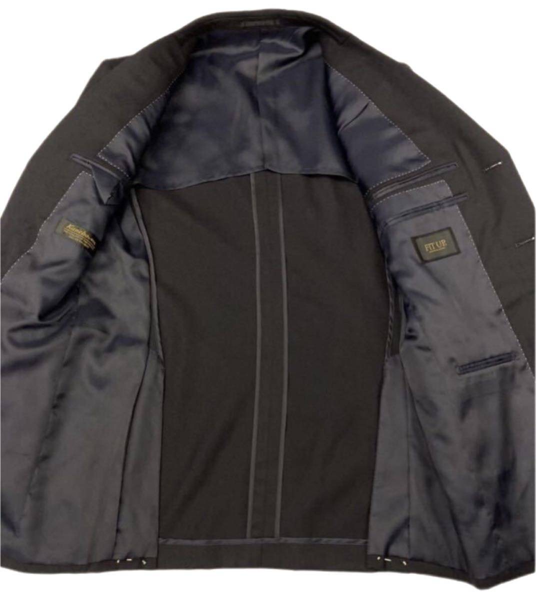 リクルートやフレッシュマンに最適なシングル3ッ釦スーツ 上着の裏側ポイントステッチ 袖を通しやすく袖裏にキュプラ100%