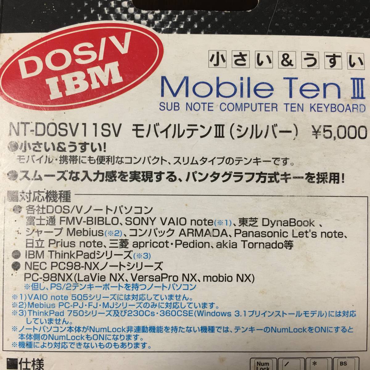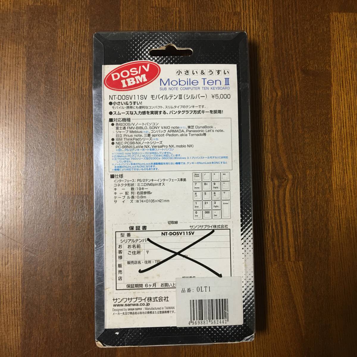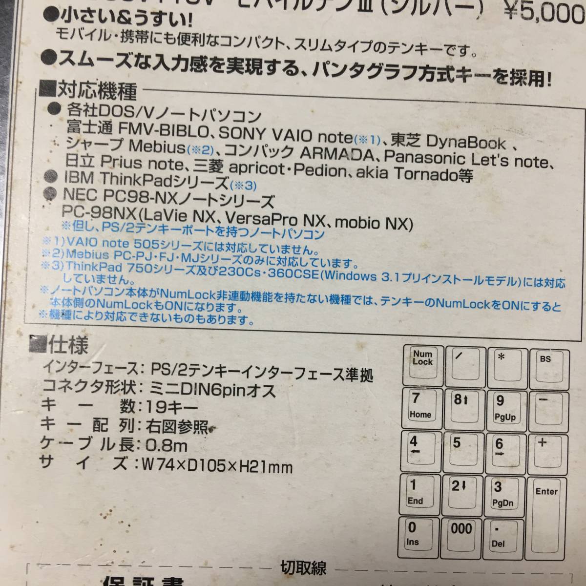 [箱付き!] サンワサプライ モバイルテンⅢ NT-DOSV11SV PC-98-NXノート PS/2 テンキー BS 000 未検品Junk品