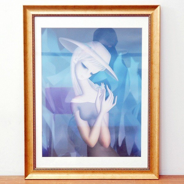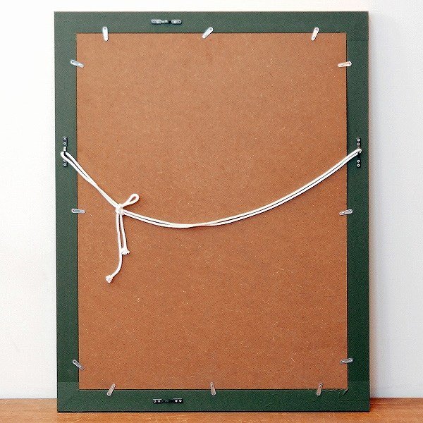 横:約530mm、縦:約680㎜、重さ:約2.4kg、絵は印刷です。 ポスター等に使われるコート紙にオフセット印刷したものだと思います。 額の前面はガラスです。状態ランク:B